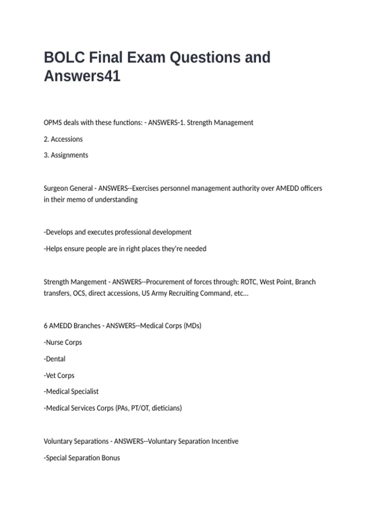 BOLC Final Exam Questions and Answers