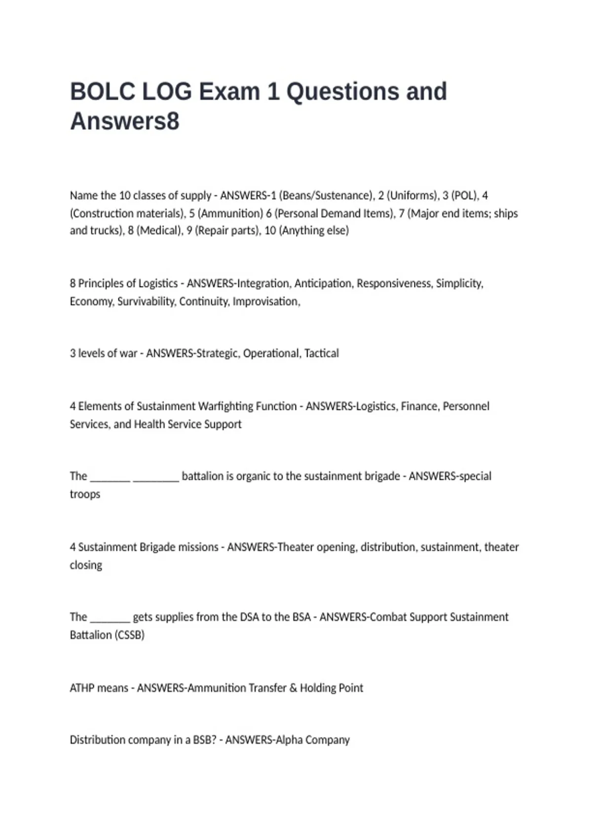 Name the 10 classes of supply - ANSWERS-1 (Beans/Sustenance), 2 (Uniforms), 3 (POL), 4
