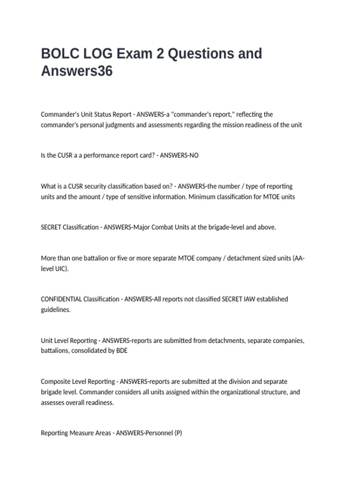 Commander's Unit Status Report - ANSWERS-a "commander's report," reflecting the