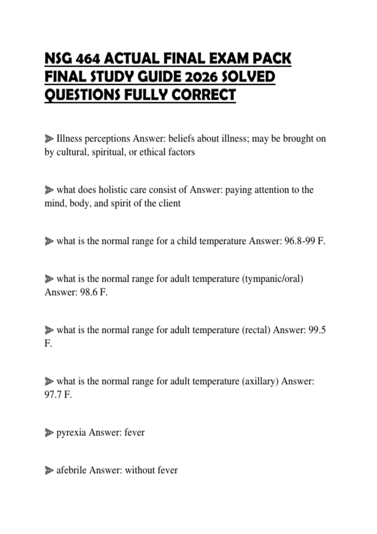 NSG 464 ACTUAL FINAL EXAM PACK FINAL STUDY GUIDE 2026 SOLVED QUESTIONS FULLY CORRECT