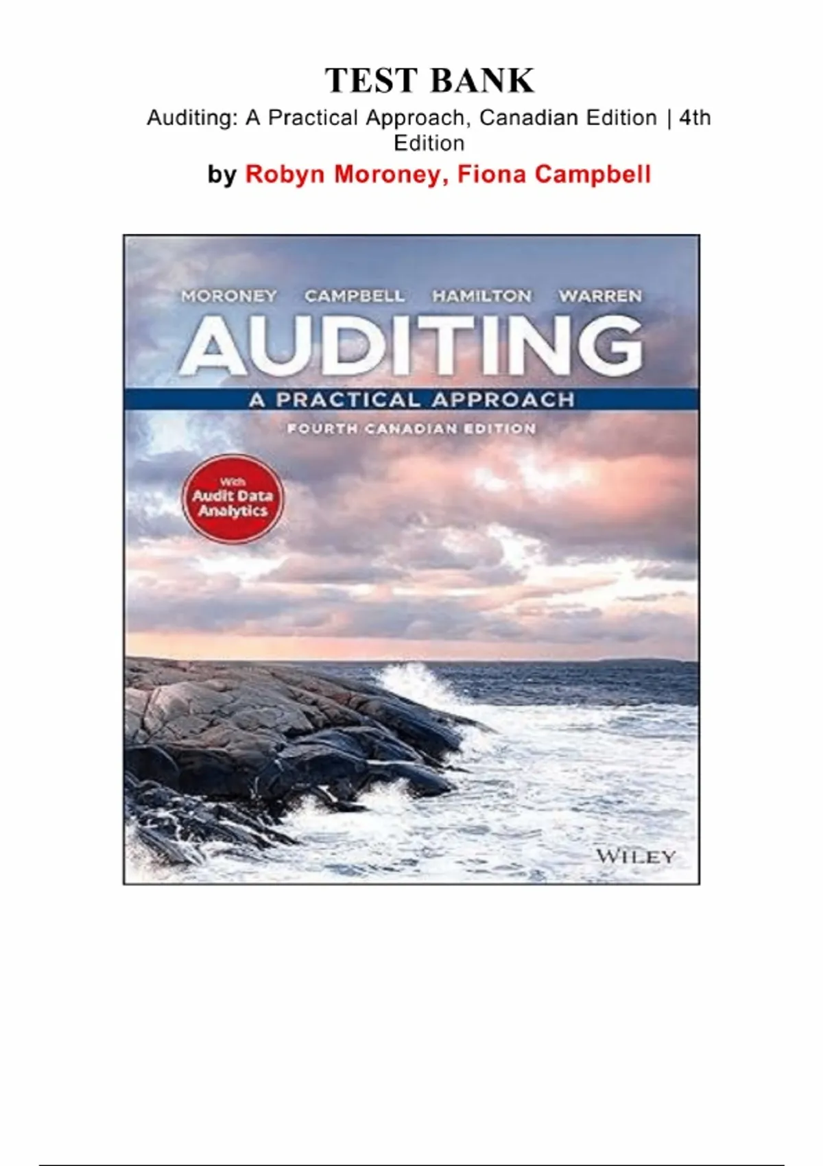 Auditing: A Practical Approach – Robyn Moroney & Fiona Campbell (4th Canadian Edition) | Complete Test Bank (Chapters 1–15)