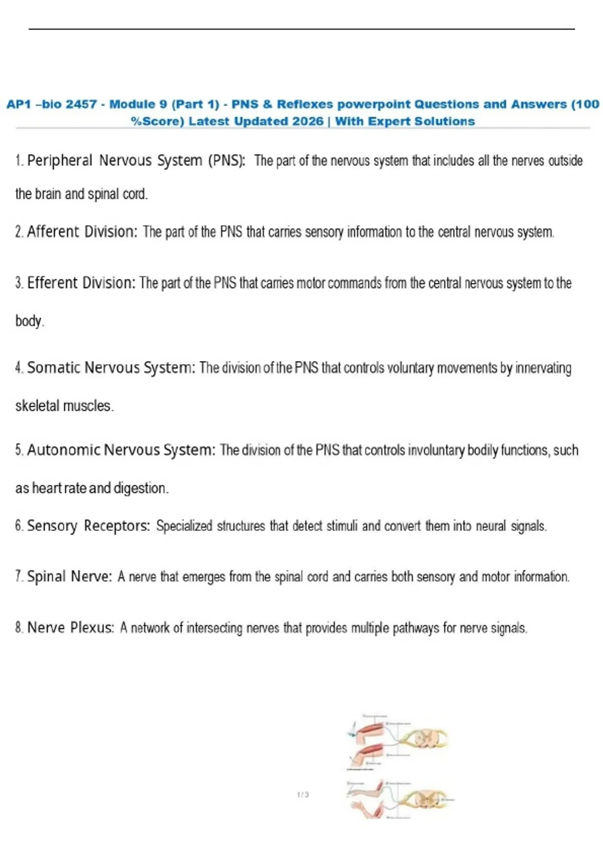AP1 –bio 2457 - Module 9 (Part 1) - PNS & Reflexes powerpoint Questions and Answers (100 %Score) Latest Updated 2026 | With Expert Solutions