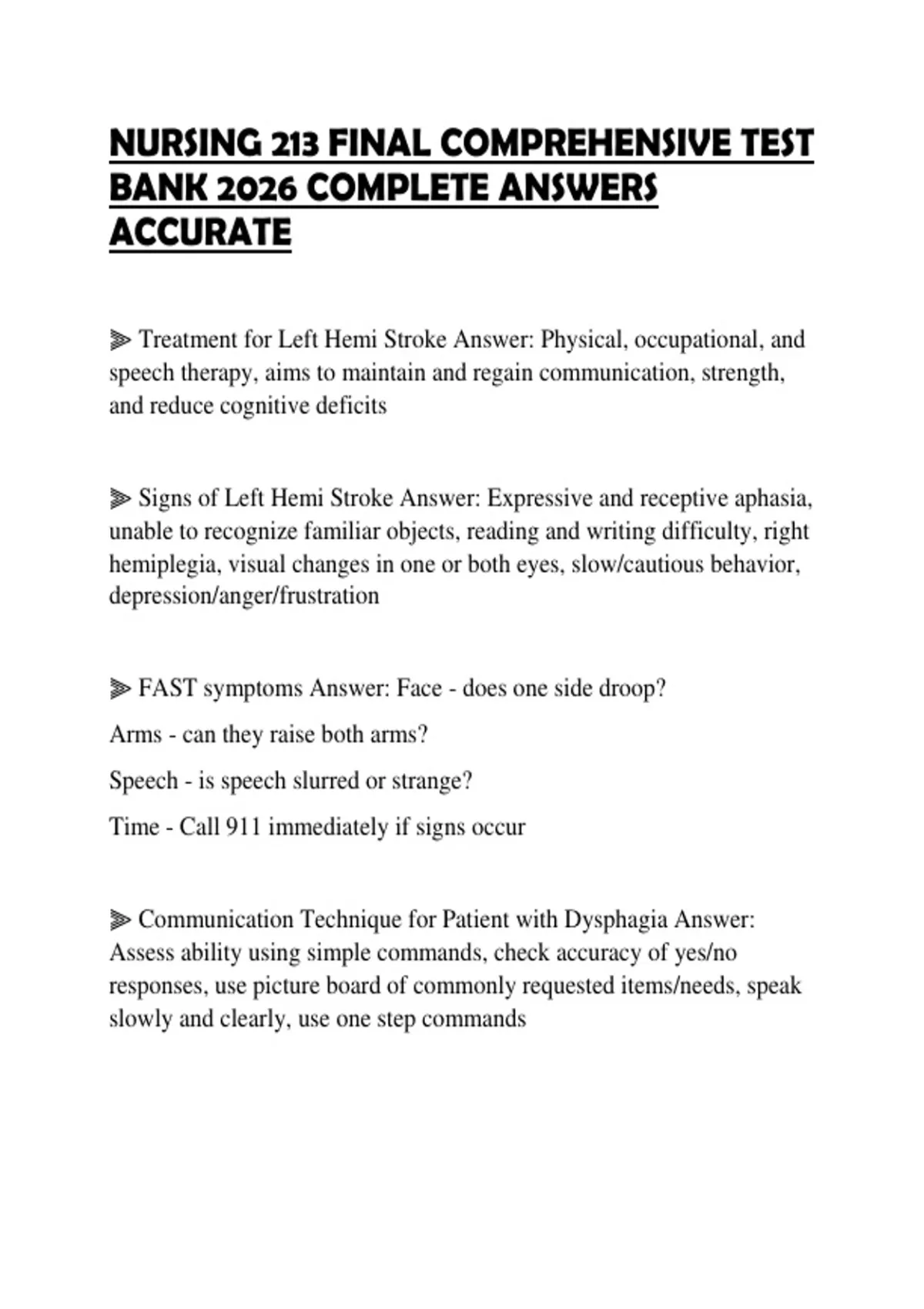 NURSING 213 FINAL COMPREHENSIVE TEST BANK 2026 COMPLETE ANSWERS ACCURATE