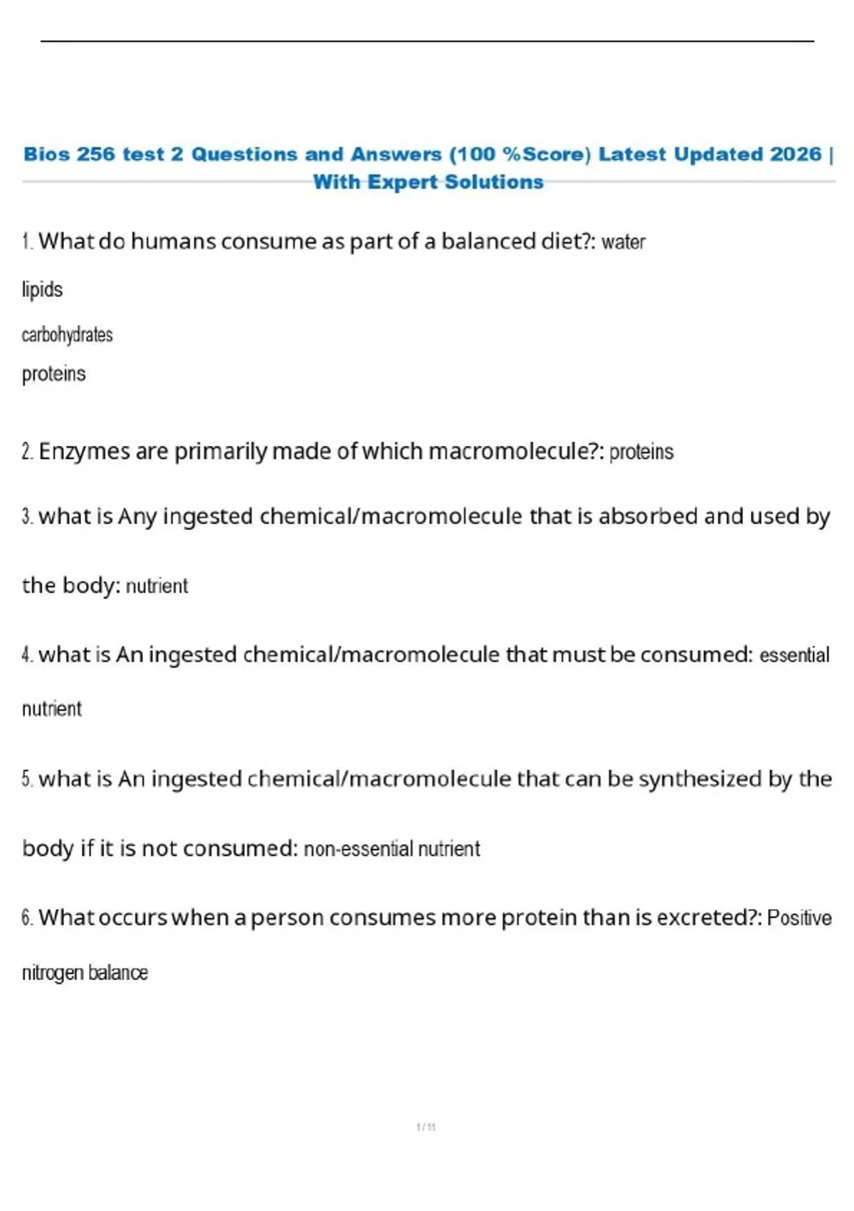 Bios 256 test 2 Questions and Answers (100 %Score) Latest Updated 2026 | With Expert Solutions