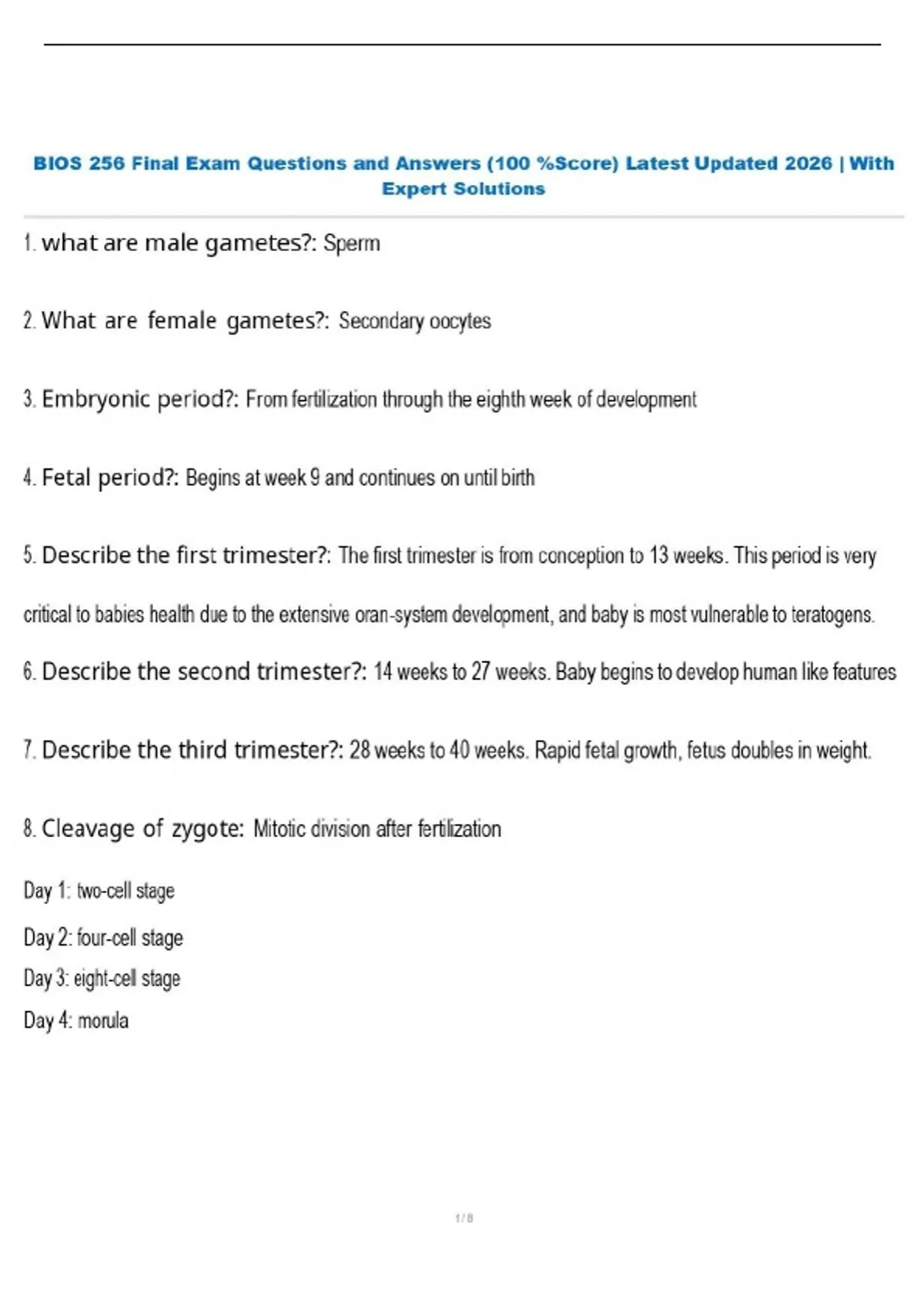 BIOS 256 Final Exam Questions and Answers (100 %Score) Latest Updated 2026 | With Expert Solutions