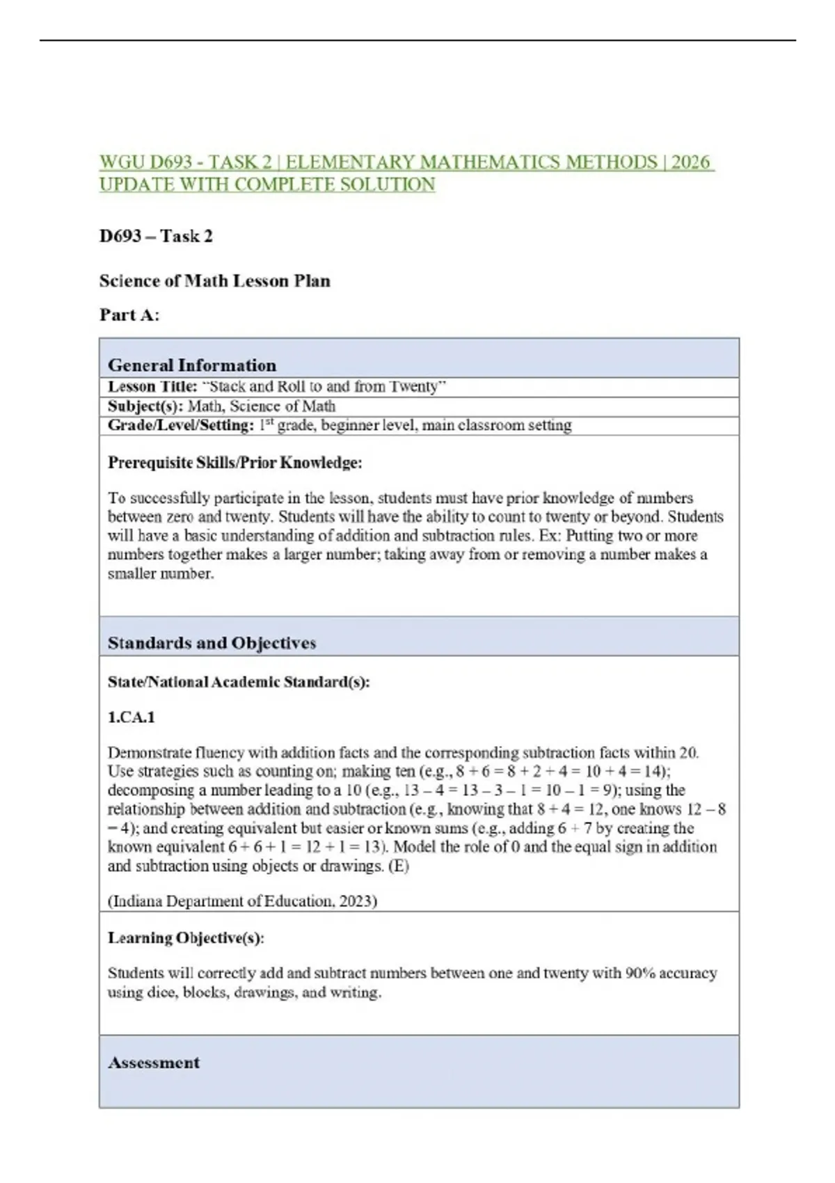 WGU D693 - TASK 2 | ELEMENTARY MATHEMATICS METHODS | 2026 UPDATE WITH COMPLETE SOLUTION
