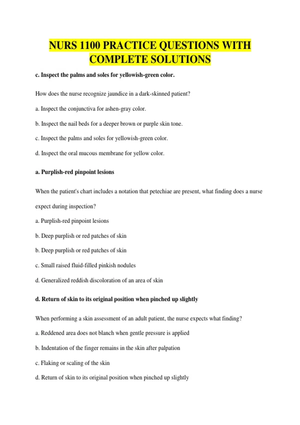 NURS 1100 PRACTICE QUESTIONS WITH COMPLETE SOLUTIONS