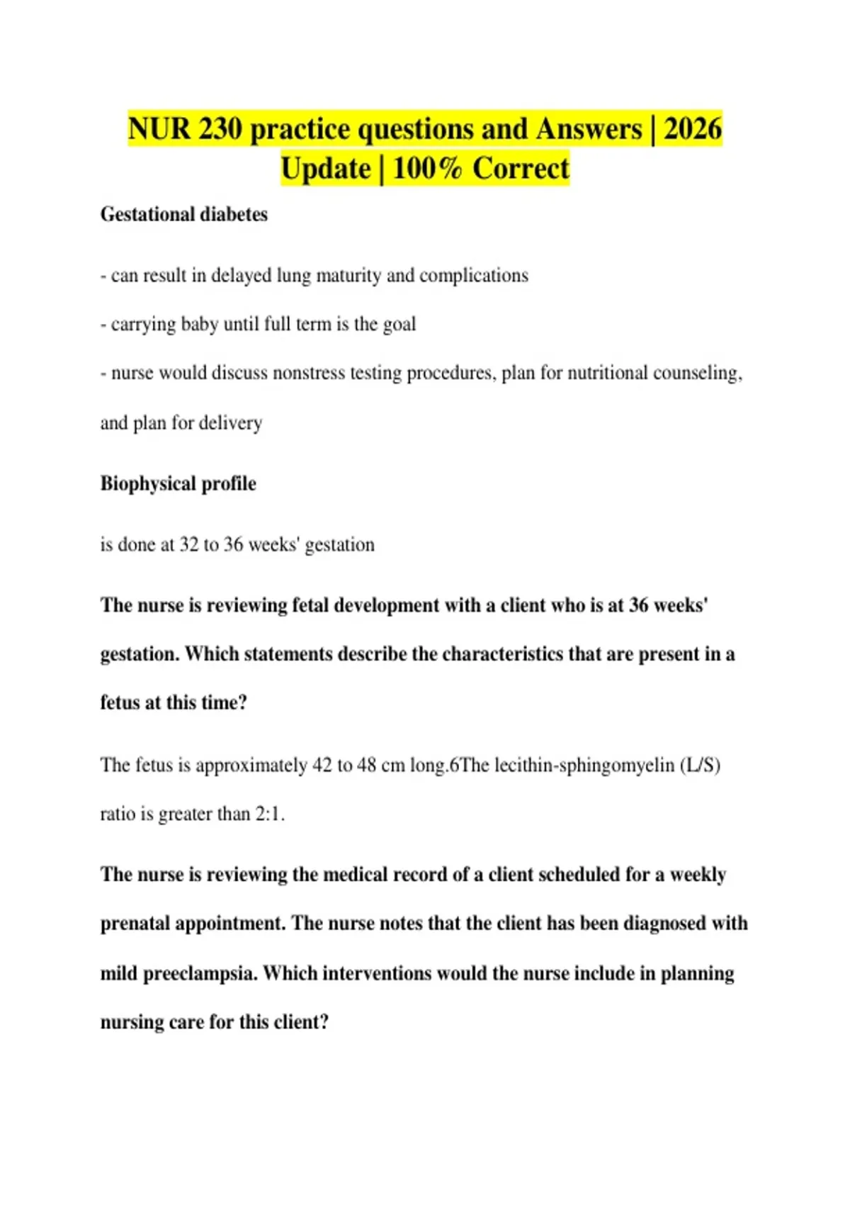 NUR 230 practice questions and Answers | 2026