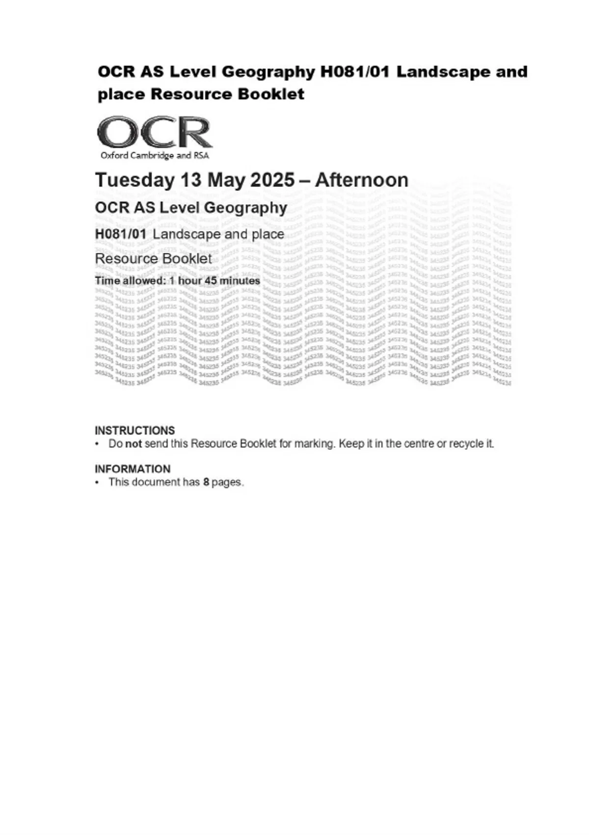 OCR AS Level Geography H081/01 Landscape and place Resource Booklet