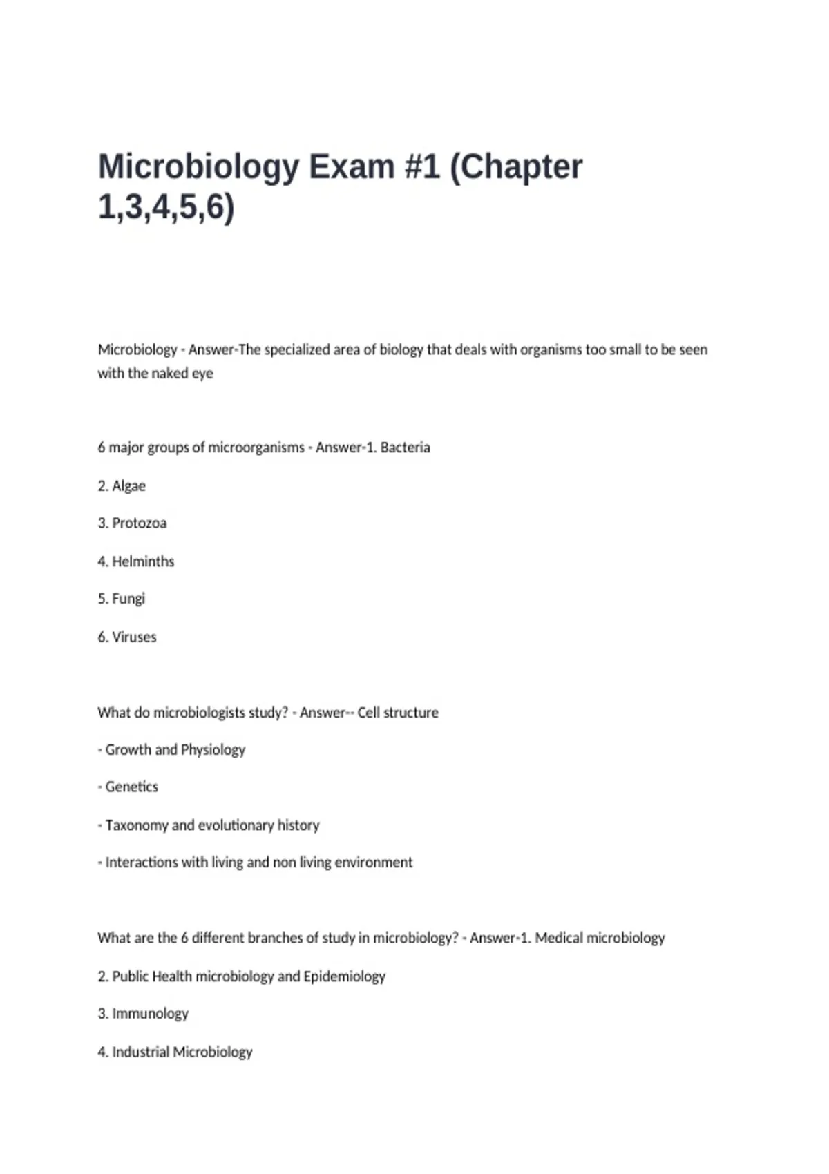 What are the 6 different branches of study in microbiology? - Answer-1. Medical microbiology