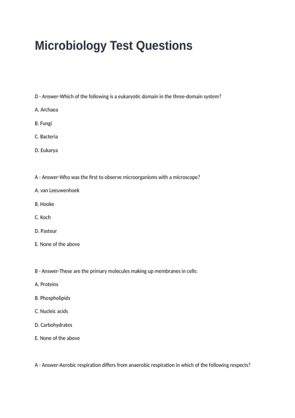 Microbiology Test Questions and Answers