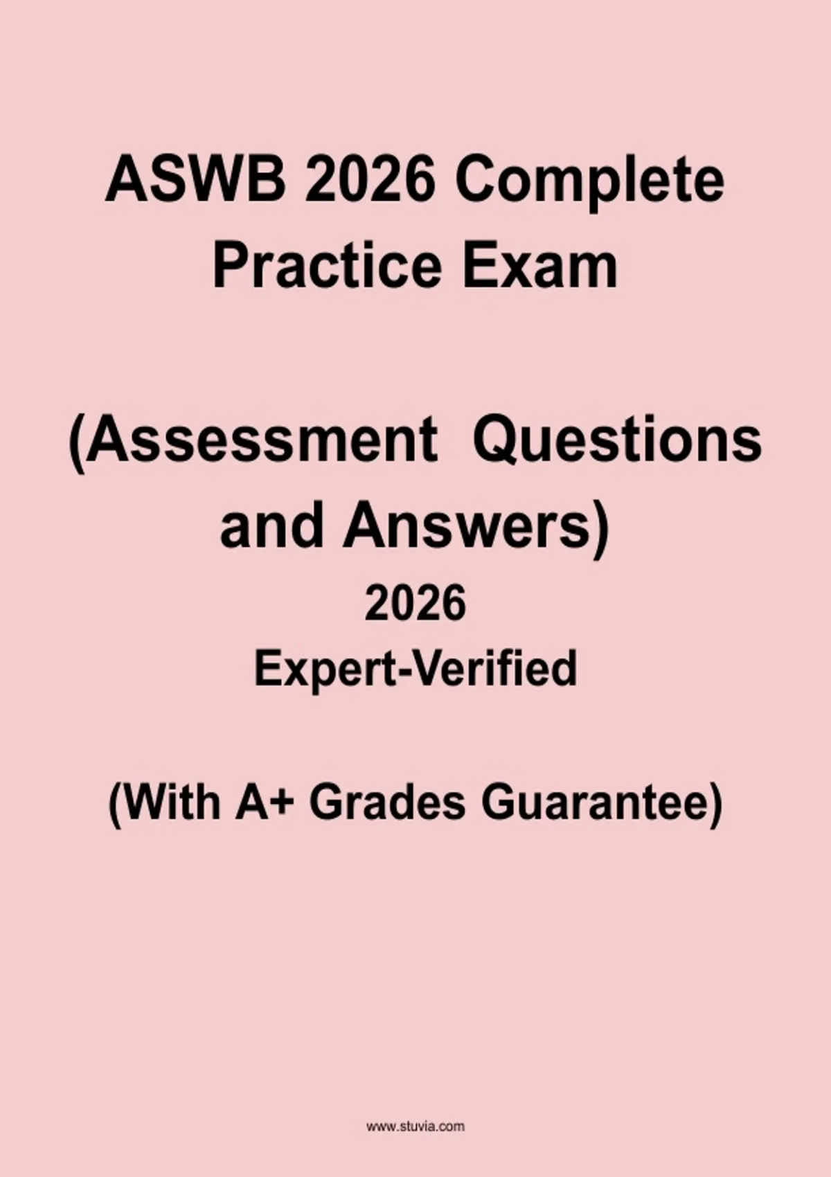 The ASWB 2026 Complete Practice Exam PDF provides a comprehensive collection of verified questions and detailed answers covering all core social work domains. Designed to simulate the real ASWB exam experience, this resource includes assessment, diagnosis, intervention planning, ethics, and professional practice topics. Ideal for social work students and licensed professionals preparing for the 2026 ASWB certification, it ensures thorough preparation, enhanced confidence, and top performance.