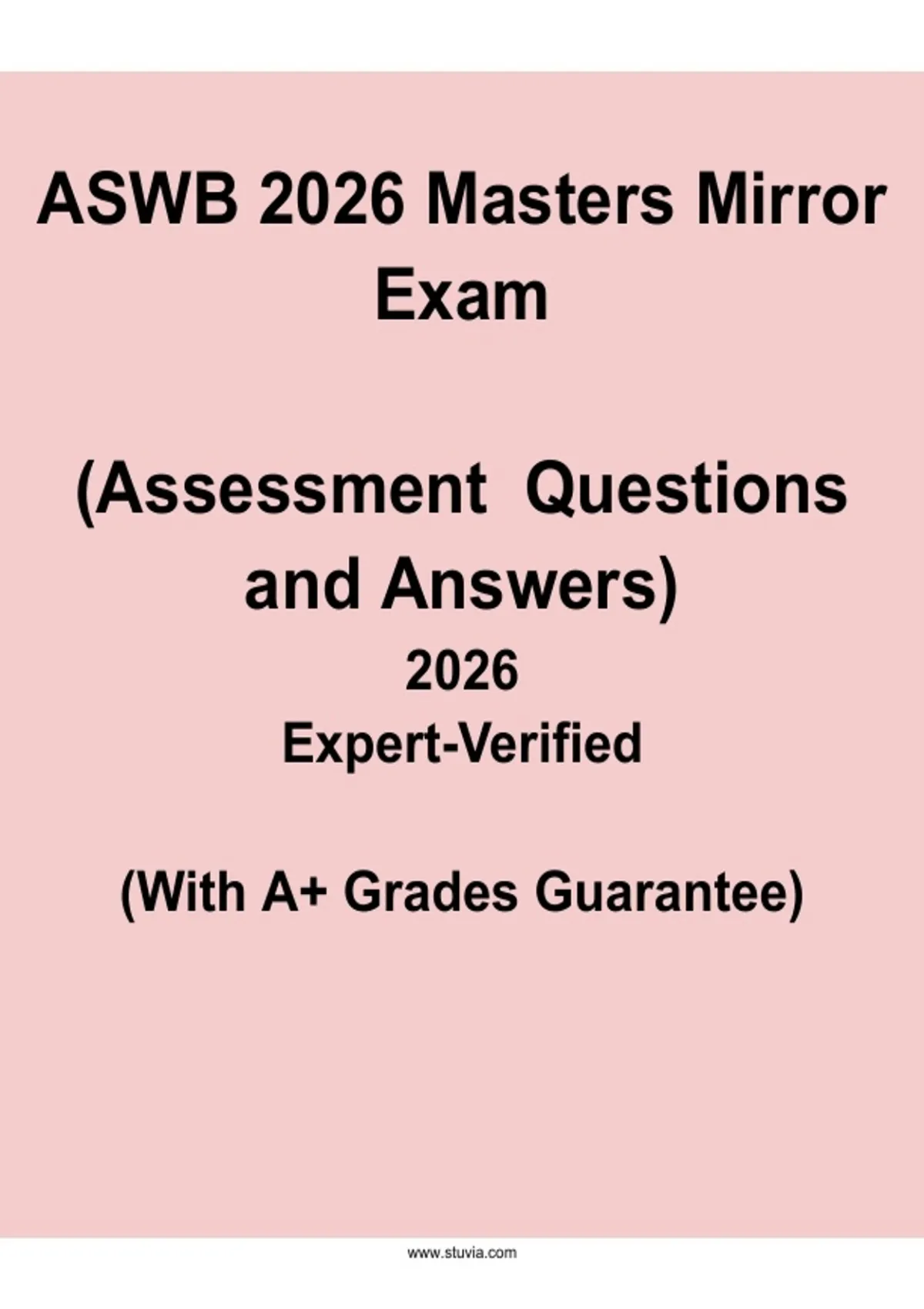 The ASWB 2026 Masters Mirror Exam PDF offers a full-length, verified practice exam designed for social workers preparing for the Masters-level ASWB licensing exam. Covering assessment, diagnosis, intervention planning, ethics, and professional practice, this resource simulates the real exam experience. With detailed answers and explanations, it is ideal for enhancing test-taking skills, building confidence, and ensuring top performance on the 2026 ASWB Masters exam.