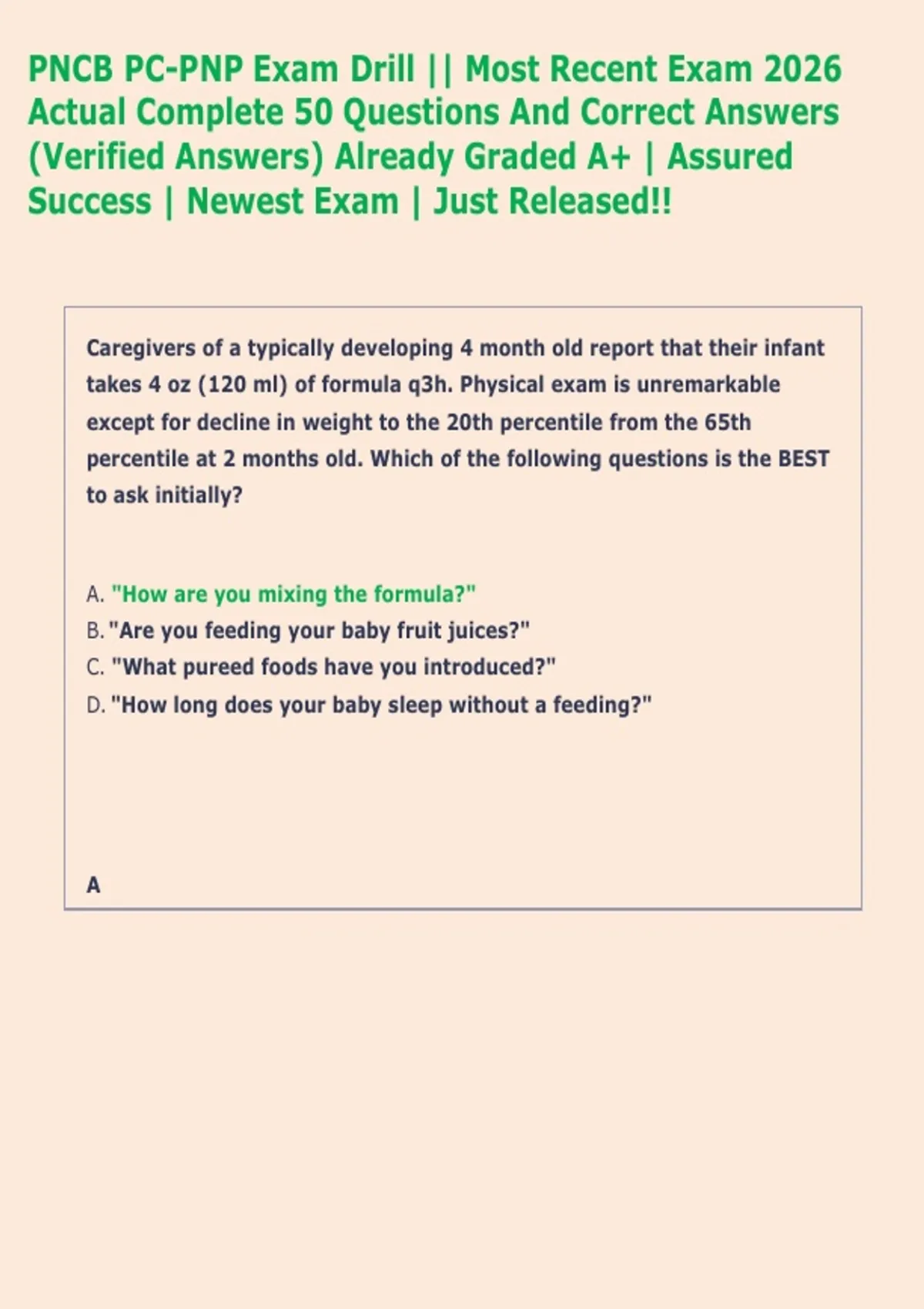 percentile at 2 months old. Which of the following questions is the BEST