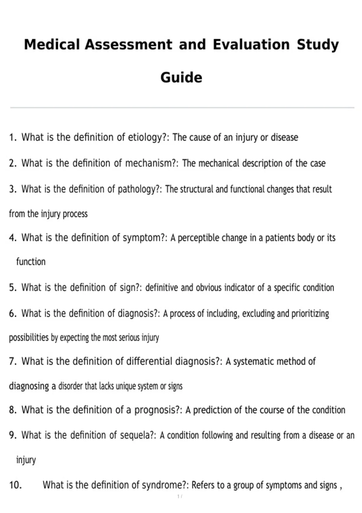 Medical Assessment and Evaluation Study Guide