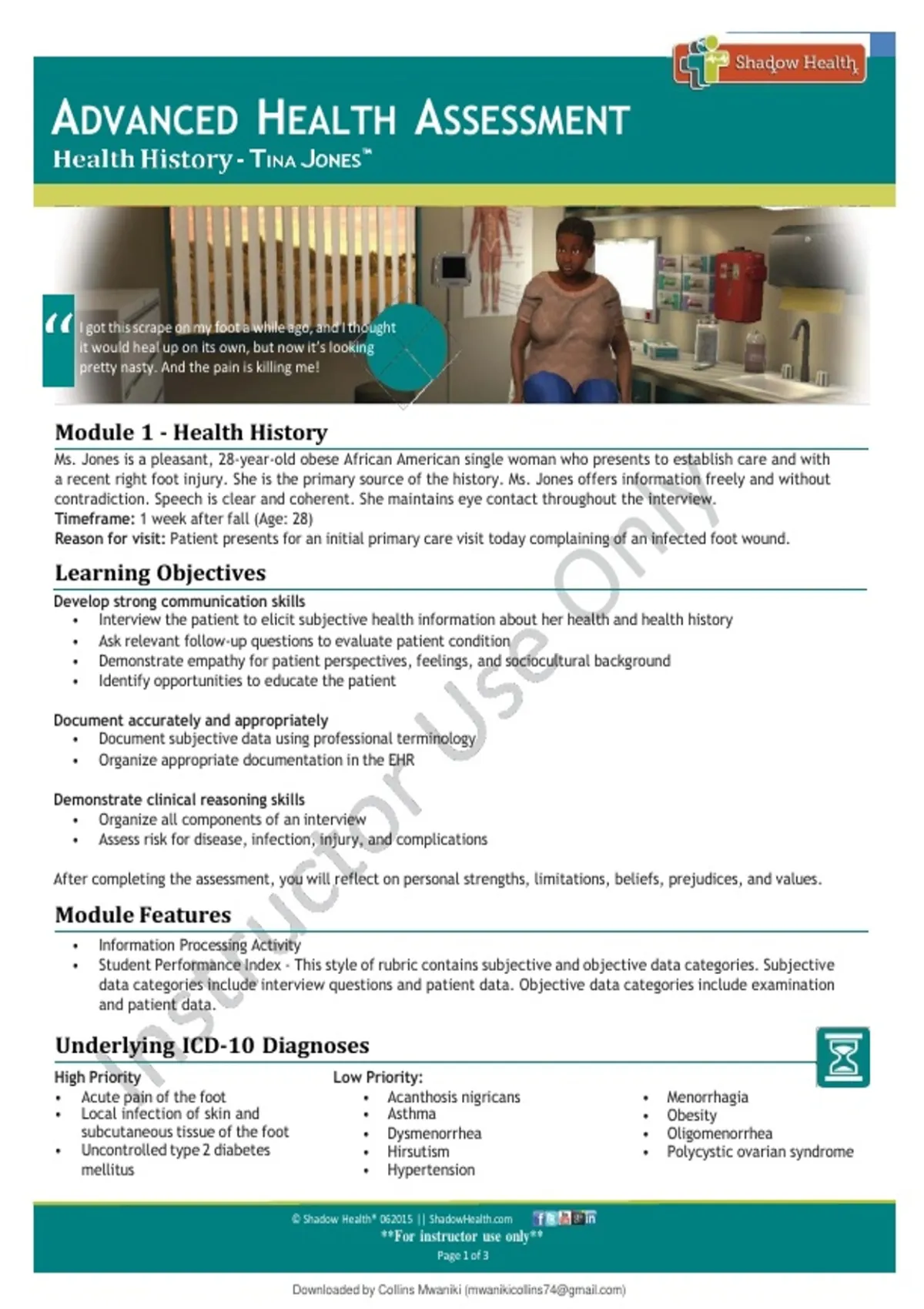 Ms. Jones is a pleasant, 28-year-old obese African American single woman who presents to establish care and with