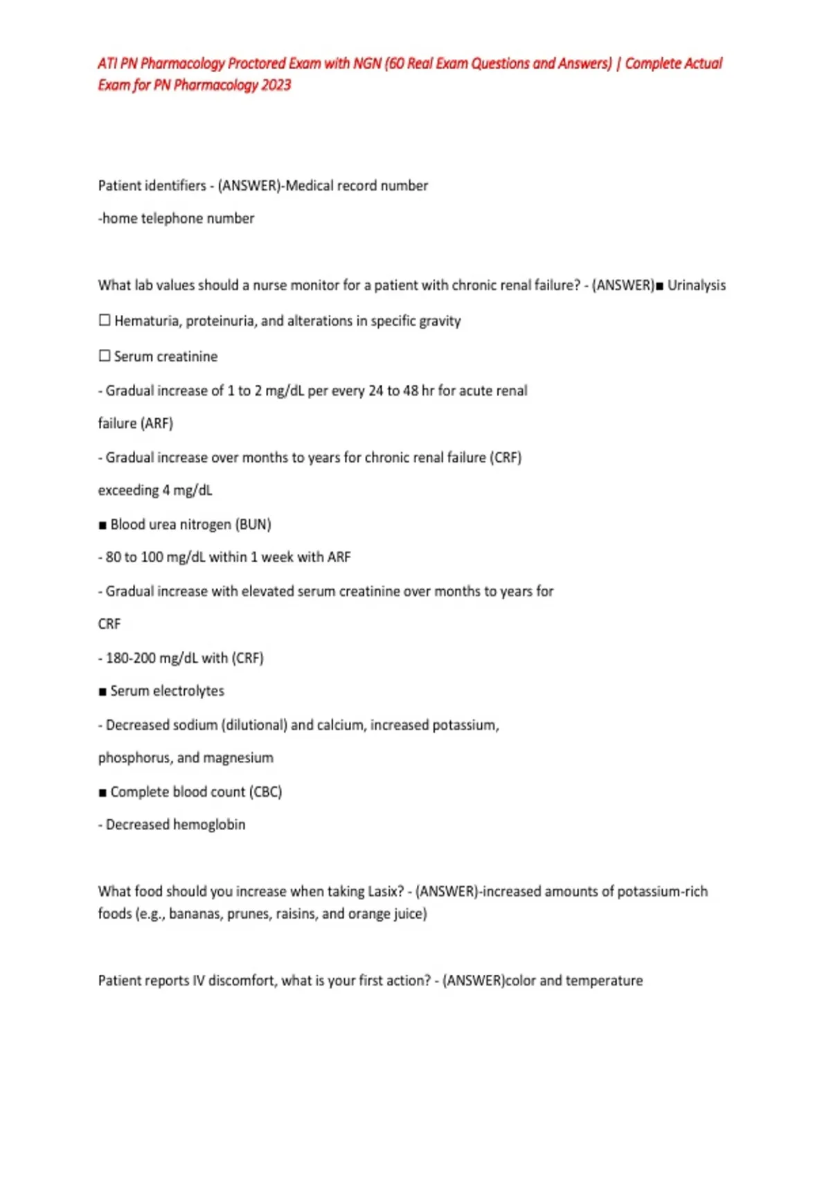ATI PN Pharmacology Proctored Exam with NGN (60 Real Exam Questions and Answers) | Complete Actual Exam for PN Pharmacology 2023