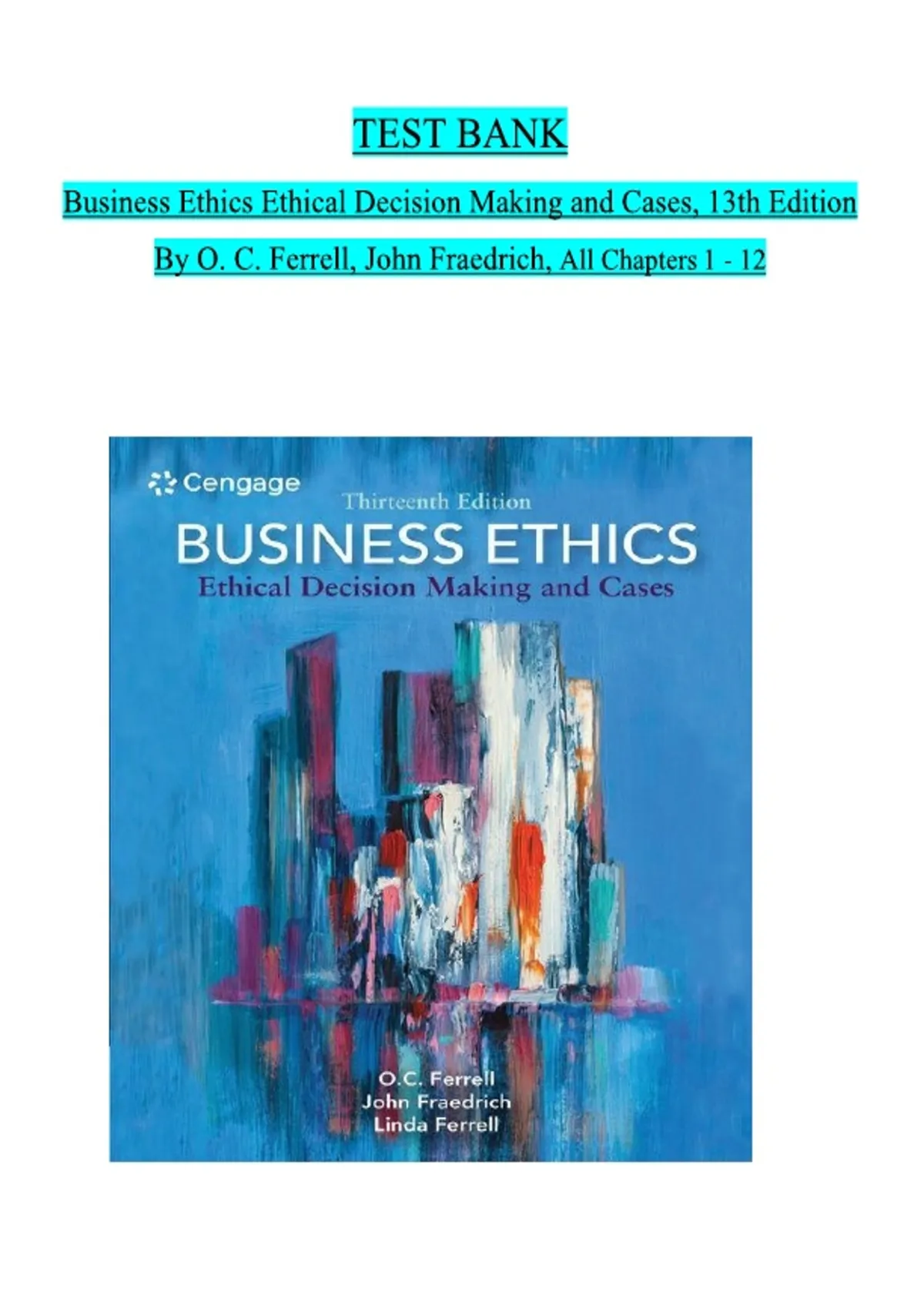 TEST BANK Business Ethics Ethical Decision Making and Cases, 13th Edition By O. C. Ferrell, John Fraedrich, All Chapters 1 - 12