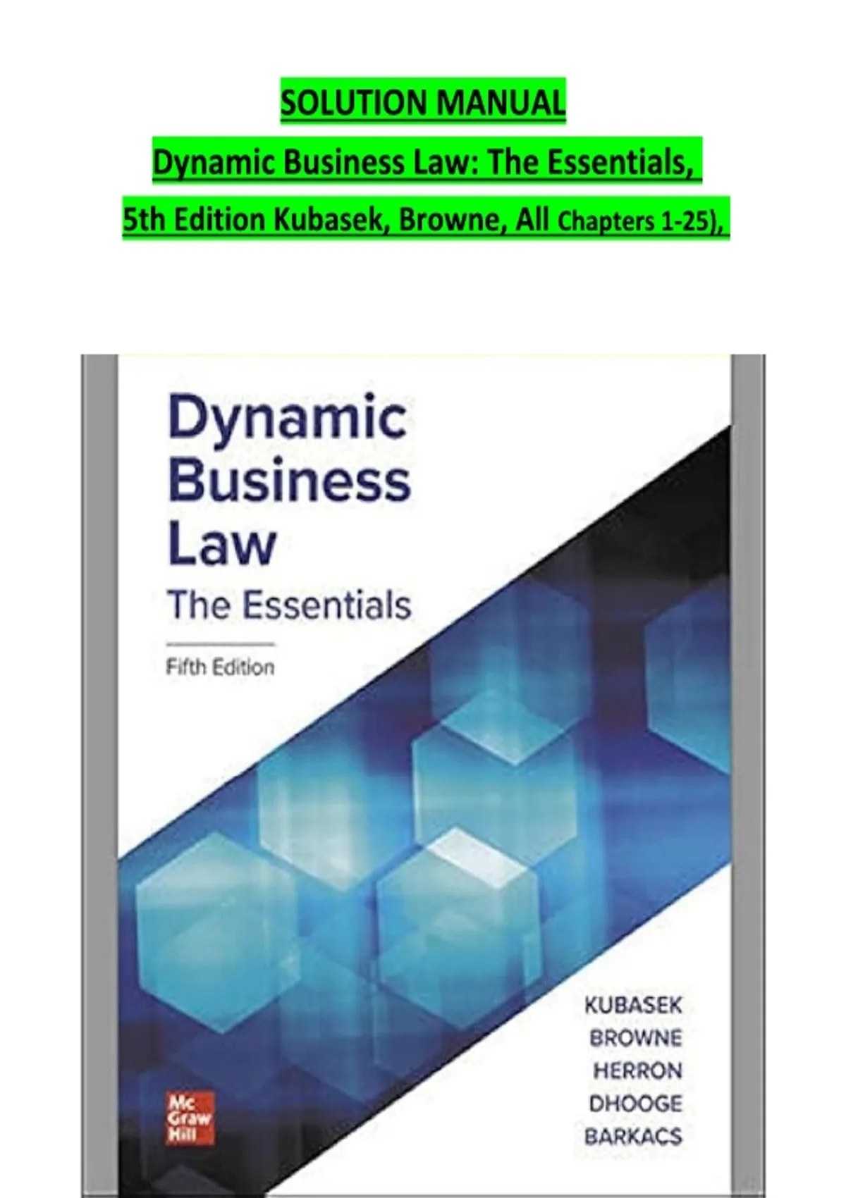SOLUTION MANUAL Dynamic Business Law: The Essentials, 5th Edition Kubasek, Browne, All Chapters 1-25),