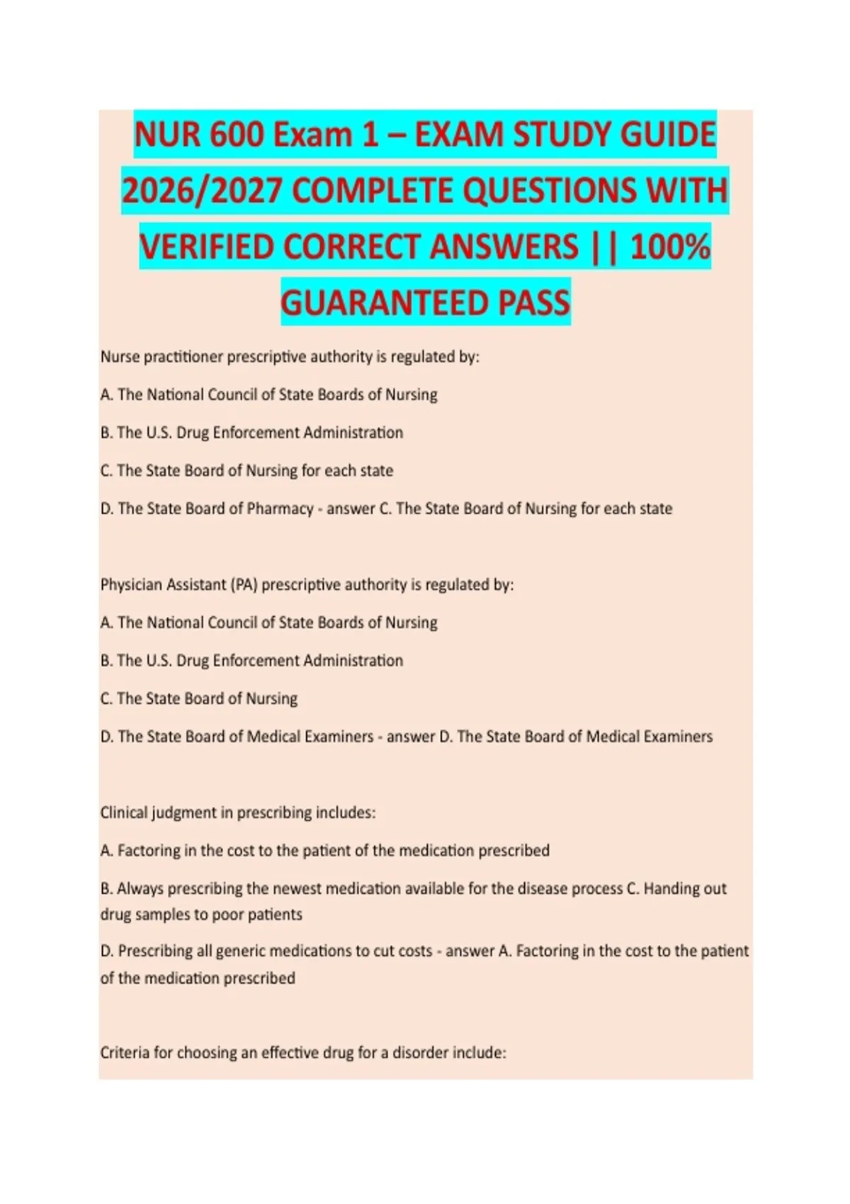 NUR 600 Exam 1 – EXAM STUDY GUIDE 2026/2027 COMPLETE QUESTIONS WITH VERIFIED CORRECT ANSWERS || 100% GUARANTEED PASS