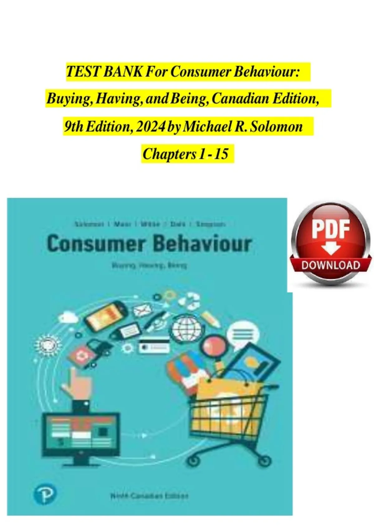 TEST BANK FOR Consumer Behaviour: Buying, Having, and Being, Canadian Edition, 9th edition by Michael R. Solomon , Darren W. Dahl , Bonnie Simpson ISBN:9780137652167 COMPLETE GUIDE WITH RATIONALES 100% VERIFIED A+ GRADE ASSURED!!!!!!NEW LATEST UPDATE!!!!!