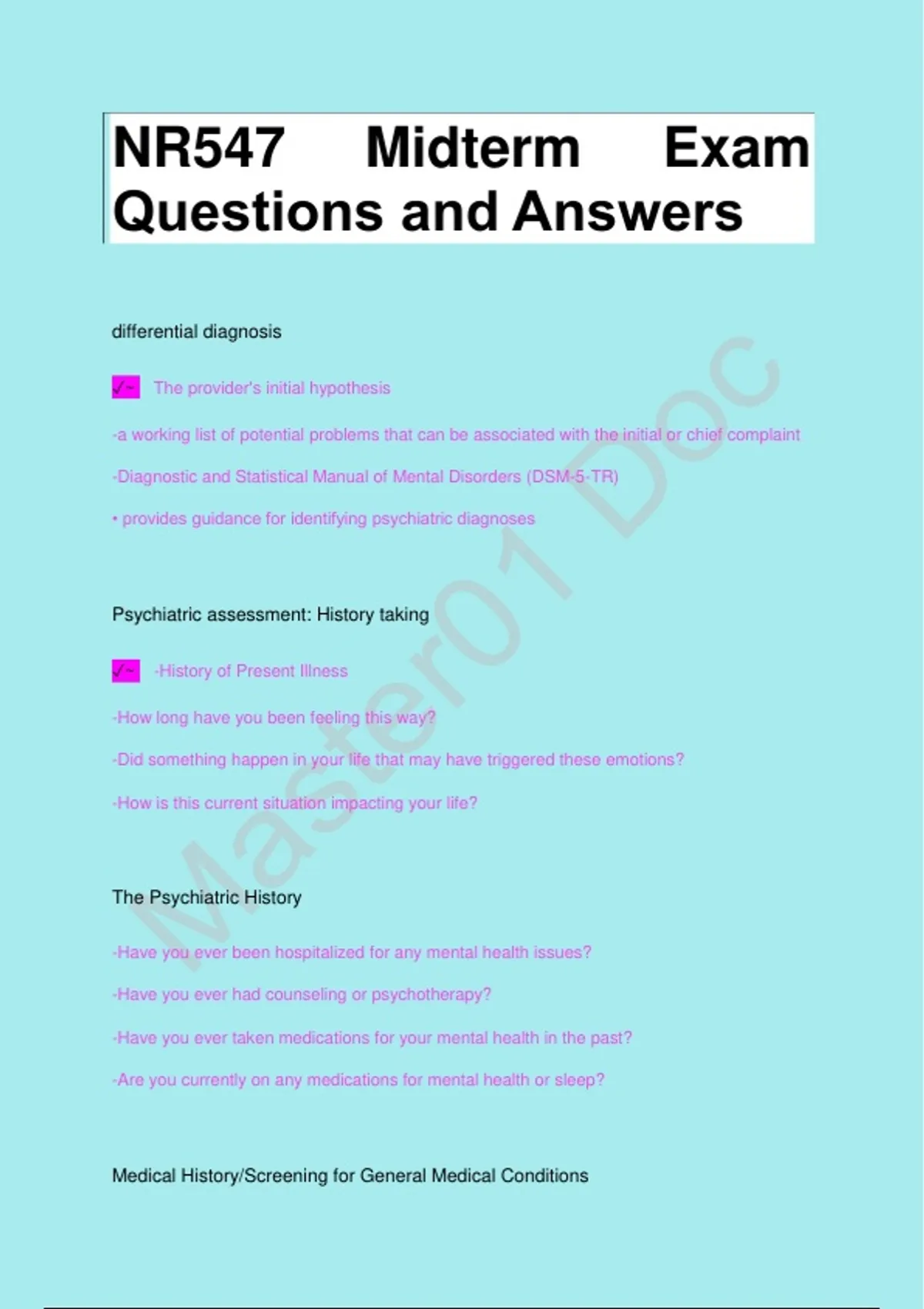NR 547 Midterm Exam Questions and Answers (A+ Score) Chamberlain University –