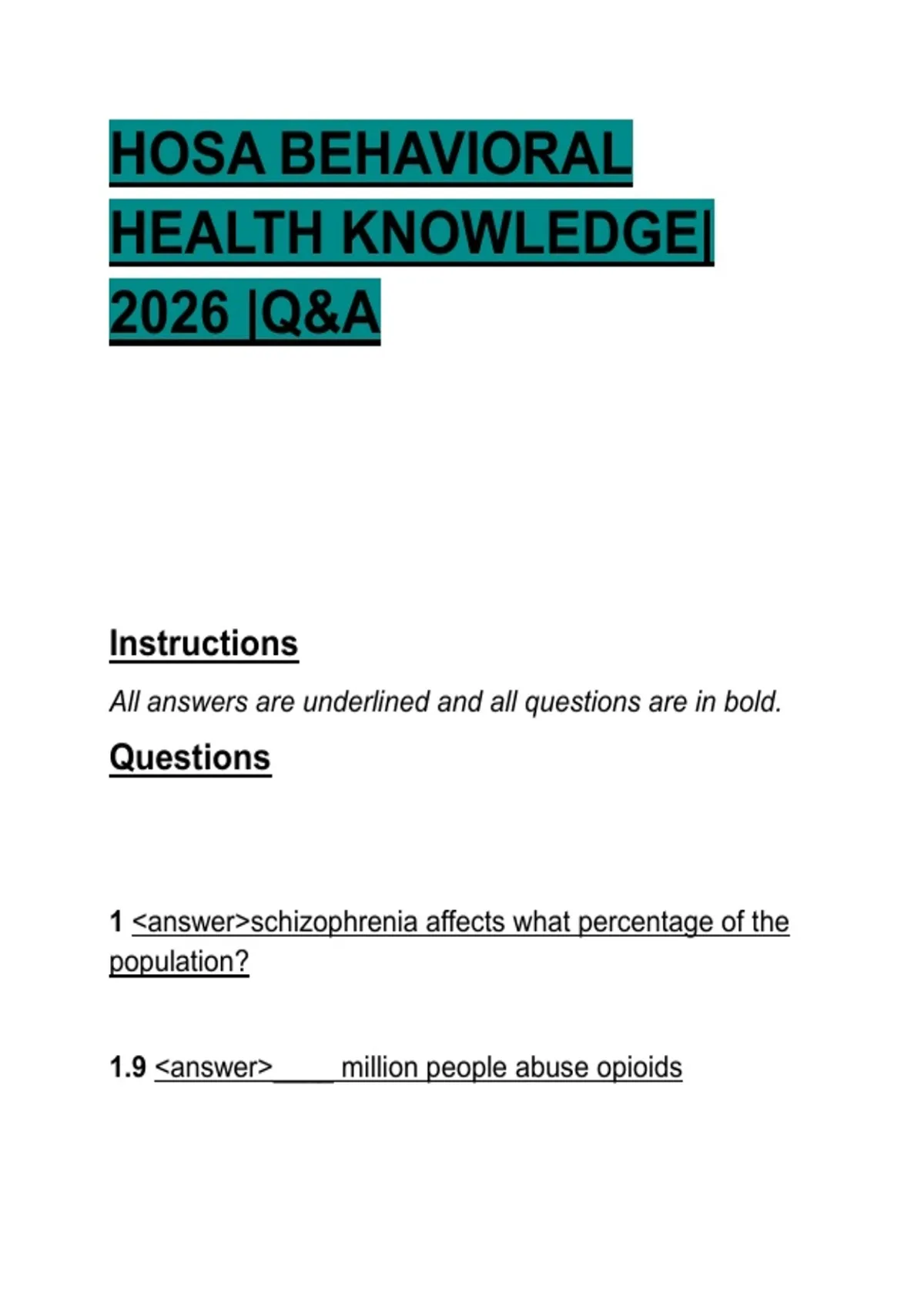 All answers are underlined and all questions are in bold.