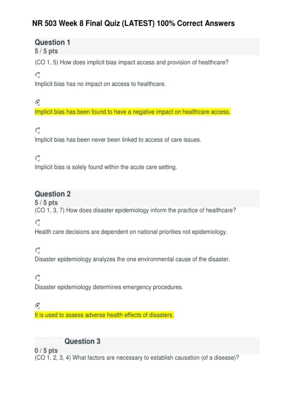 NR 503 Week 8 Final Quiz (LATEST) 100% Correct Answers