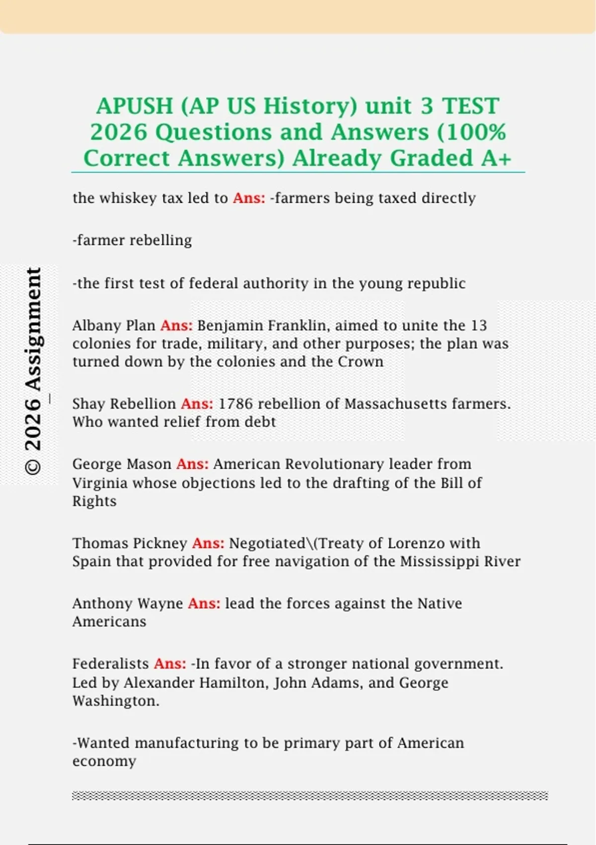 APUSH (AP US History) unit 3 TEST 2026 Questions and Answers (100% Correct Answers) Already Graded A+