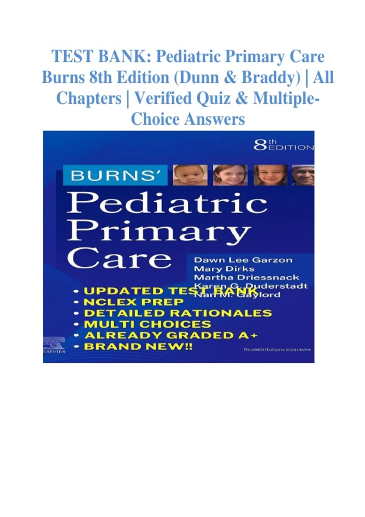 Test Bank for Pediatric Primary Care, 8th Edition by Burns, Dunn & Braddy | 2026 Verified Questions & Detailed Answers, All Chapters
