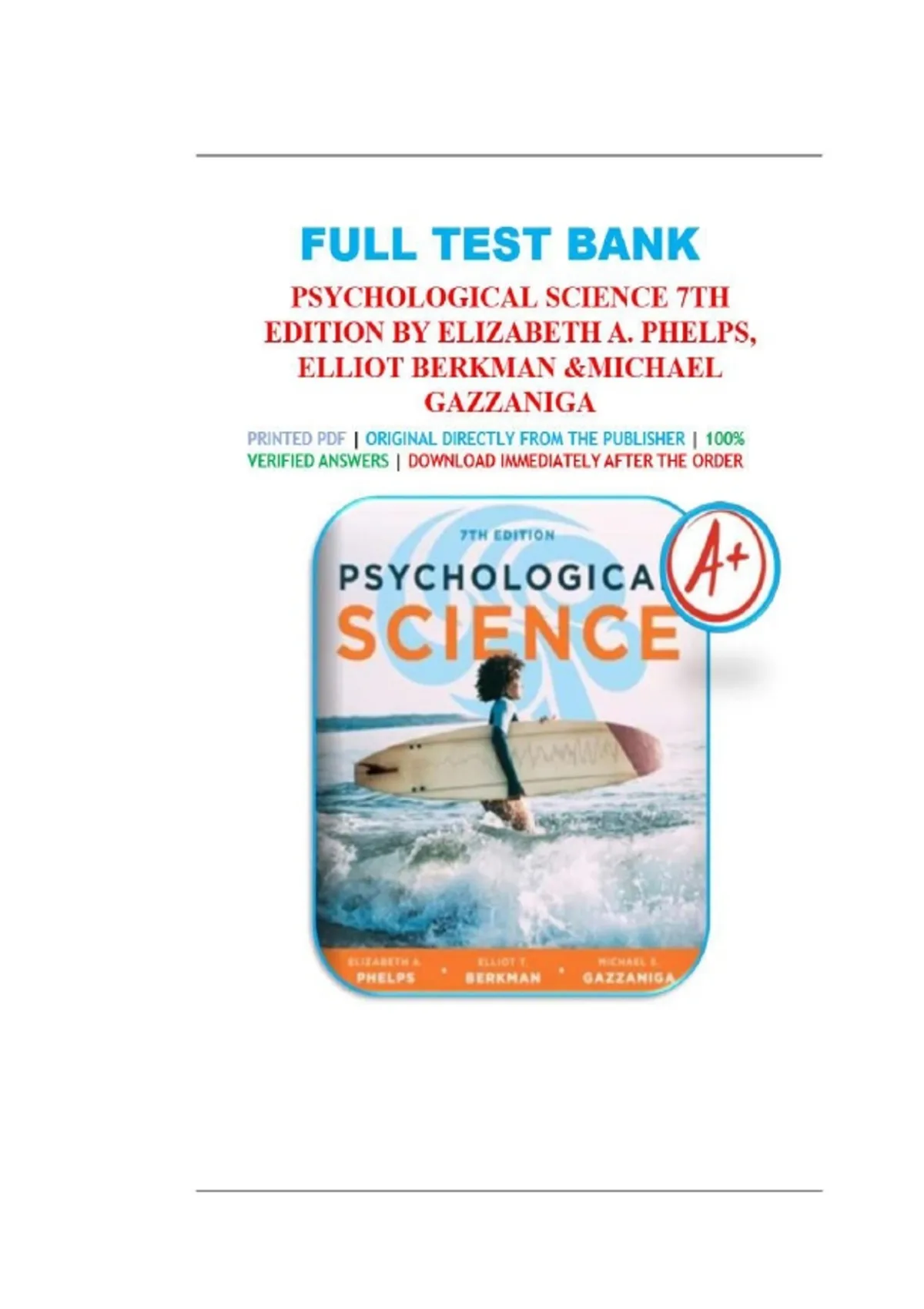 Access the 2026 Test Bank for Psychological Science, 7th Edition by Elizabeth A. Phelps, Elliot Berkman & Michael. Includes 100% verified questions and detailed answers covering all major psychology concepts. Ideal for exam preparation, assignments, and mastering psychological science. Fully graded A+ solutions with clear explanations to boost academic performance.