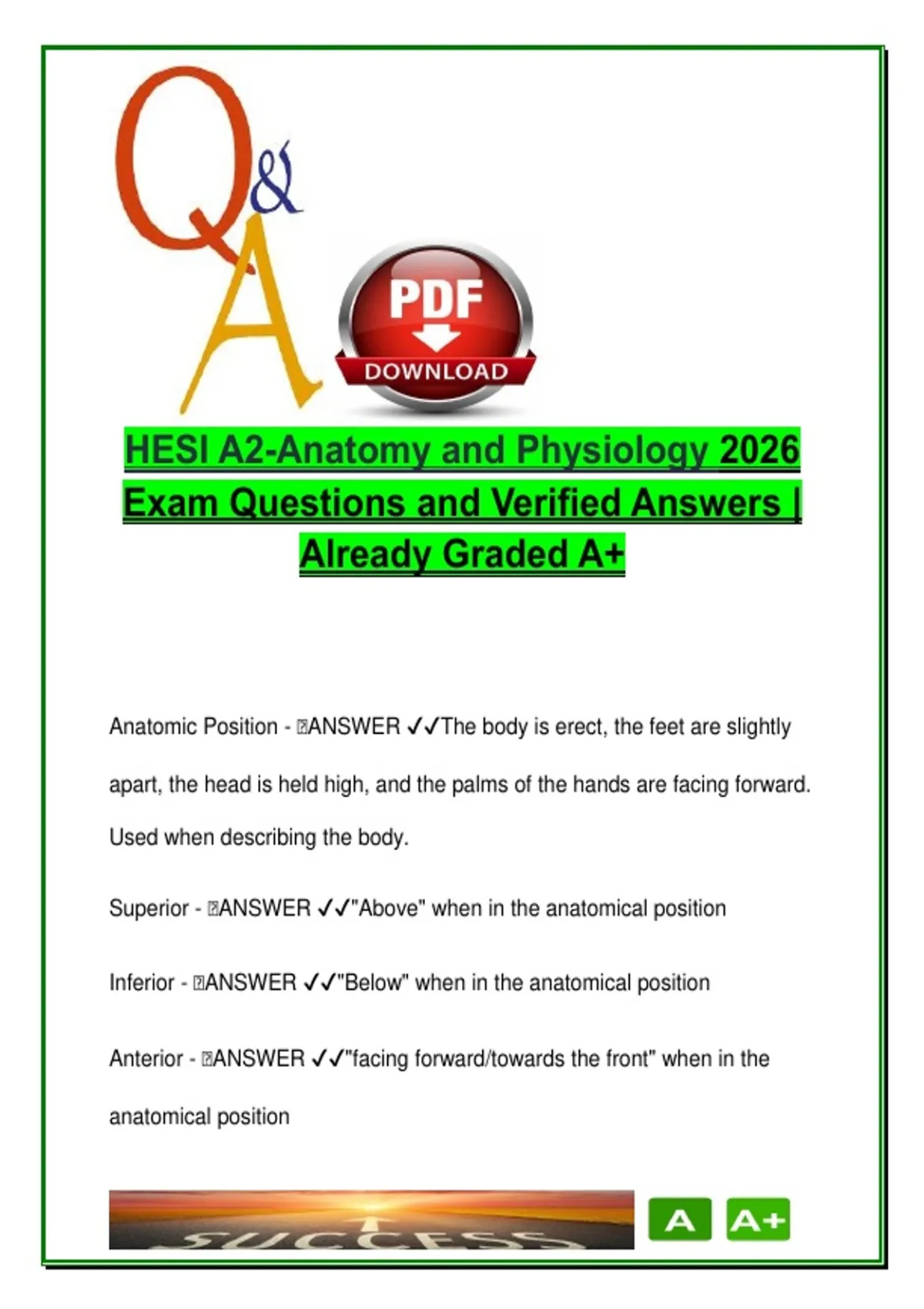 Anatomic Position - 🧠ANSWER ✔✔The body is erect, the feet are slightly