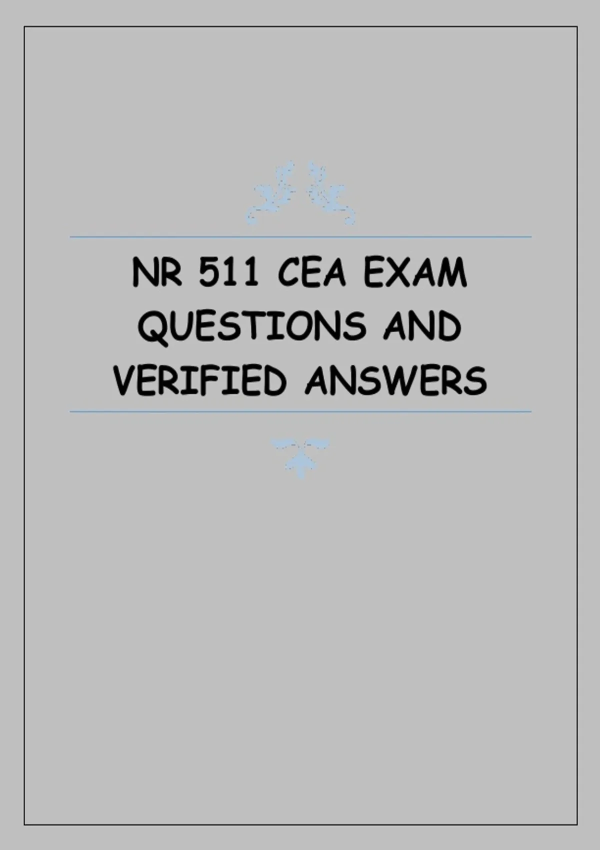 , NR 511 CEA EXAM QUESTIONS AND VERIFIED ANSWERS