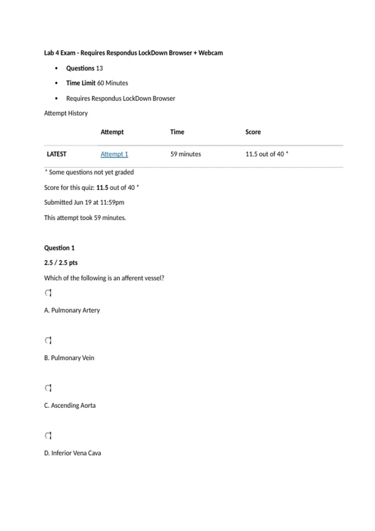 LATEST Attempt 1 59 minutes 11.5 out of 40 *