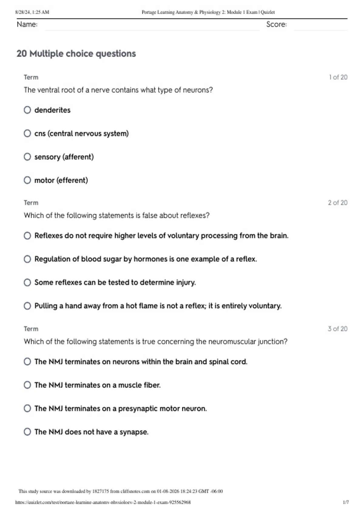 https://www.cliffsnotes.com//study-notes/18920087 /2026 Portage Learning Anatomy & Physiology 2 Module 1 Exam .pdf