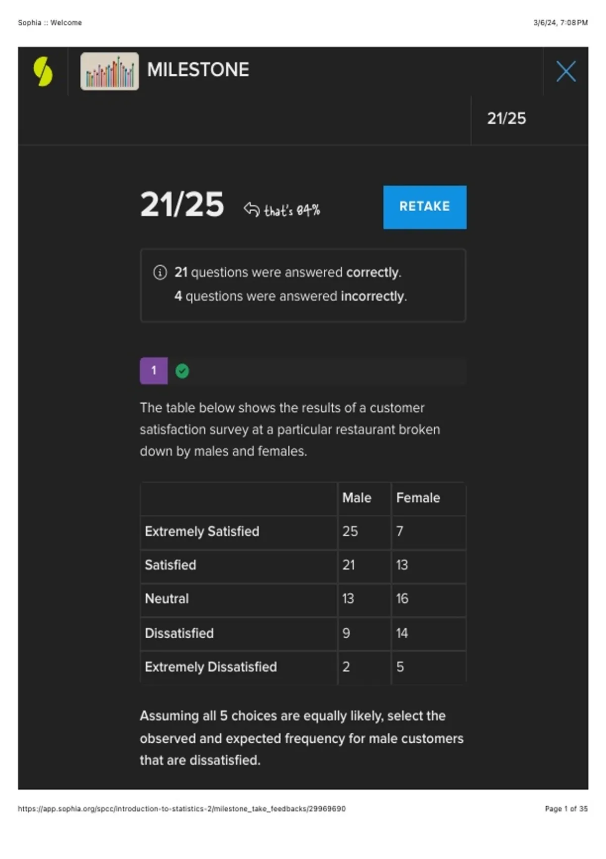 https://app.sophia.org/spcc/introduction-to-statistics-2/milestone_take_feedbacks/29969690 Page 1 of 35