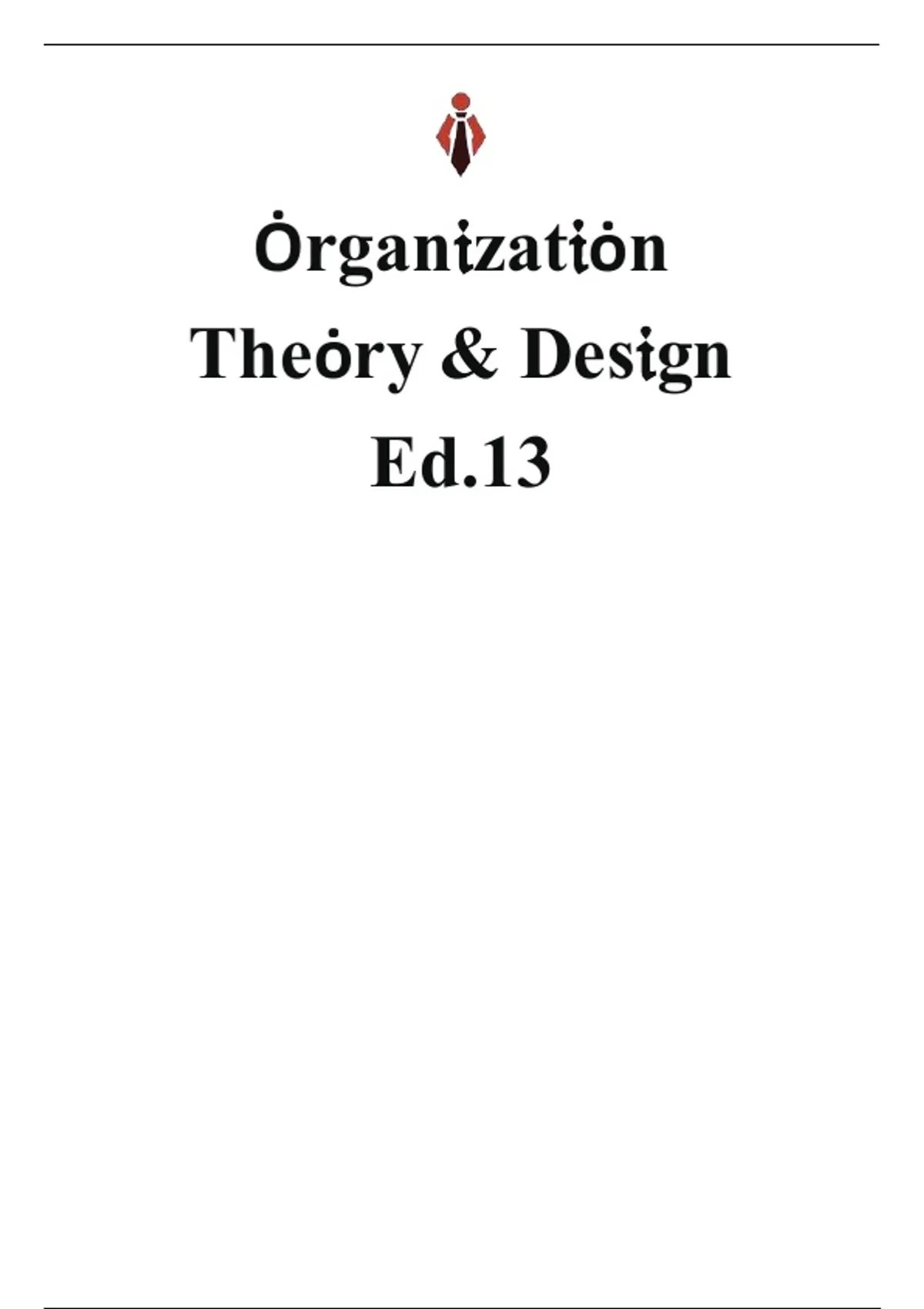 Prepare thoroughly for exams in Organization Theory & Design, 13th Edition with this complete Test Bank based on Richard L. Daft’s authoritative business management text (ISBN-13: 9780357445143). This comprehensive resource includes multiple-choice, true/false, and case application questions covering organizational theory foundations, structural design, open system elements, internal processes, decision-making, and dynamic change management. Ideal for students in undergraduate and MBA courses in management, organizational behavior, and business strategy, this test bank reinforces key concepts such as designing effective organizations, strategy alignment, organizational culture, innovation, and conflict resolution — all structured to support quiz, midterm, and final exam success. With verified answers and clear formatting, this test bank helps boost confidence and comprehension while preparing for major assessments.