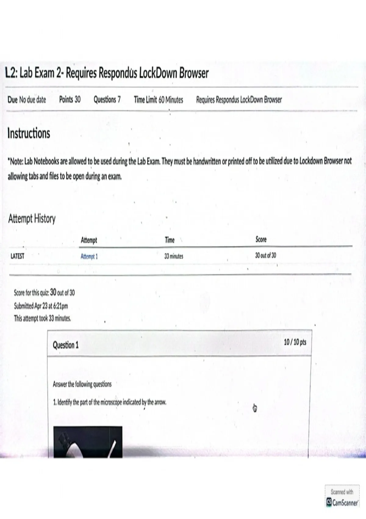 *Note: Lab Notebooks are allowed to be used during the Lab Exam. They must be handwritten or printed off to be utilized due to Lockdown Browser not