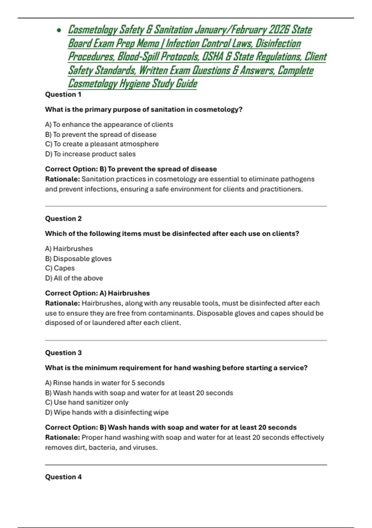 Rationale: Sanitation practices in cosmetology are essential to eliminate pathogens