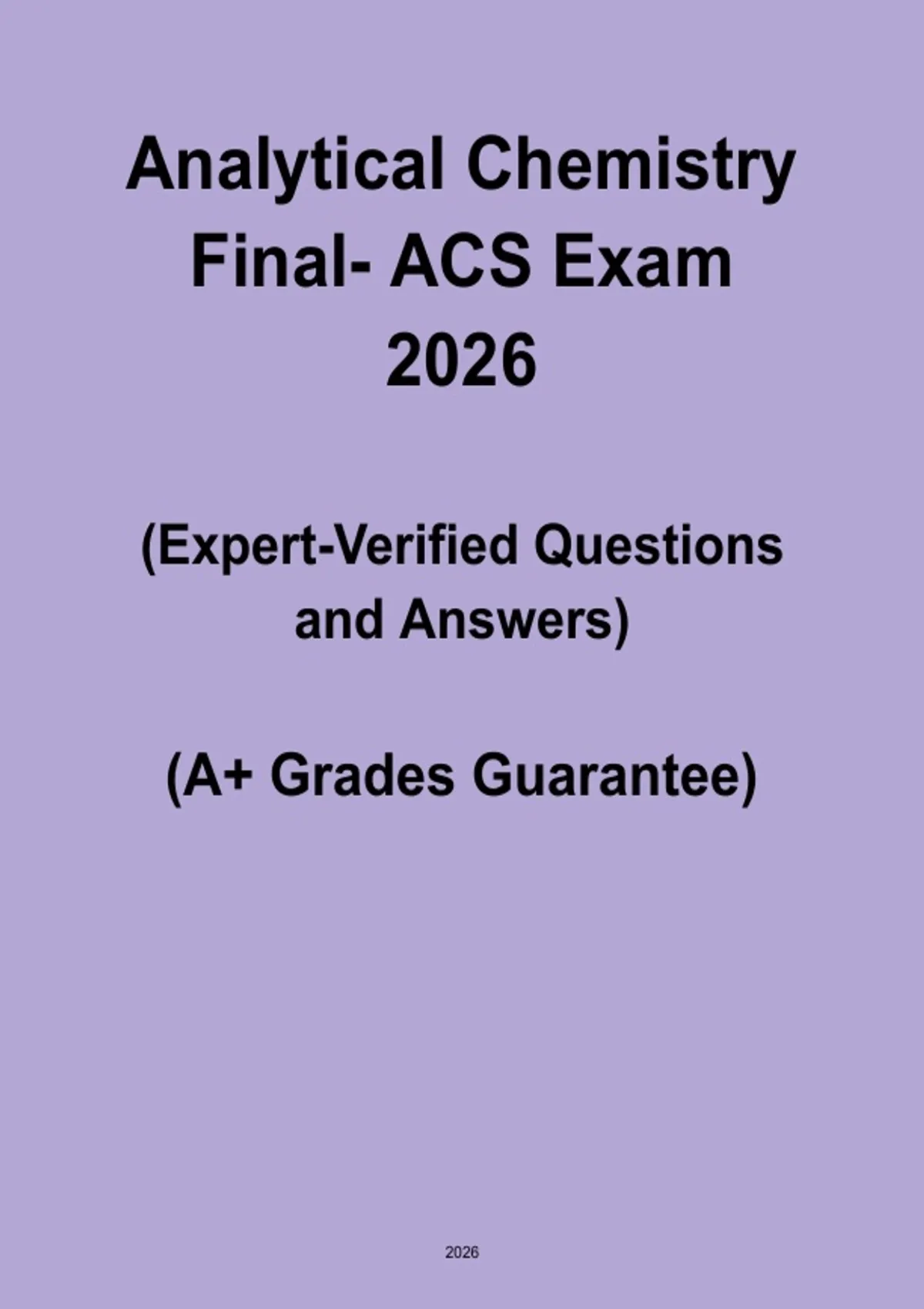 The Analytical Chemistry Final – ACS Exam guide is a targeted exam-preparation resource designed for students preparing for the American Chemical Society (ACS) Analytical Chemistry examination. This guide covers key analytical chemistry concepts, including quantitative analysis, spectroscopy, chromatography, electrochemistry, equilibrium, and data interpretation, presented in an exam-focused format. Ideal for undergraduate chemistry students, this resource supports effective review, strengthens problem-solving skills, and builds confidence for achieving strong performance on ACS analytical chemistry final exams.