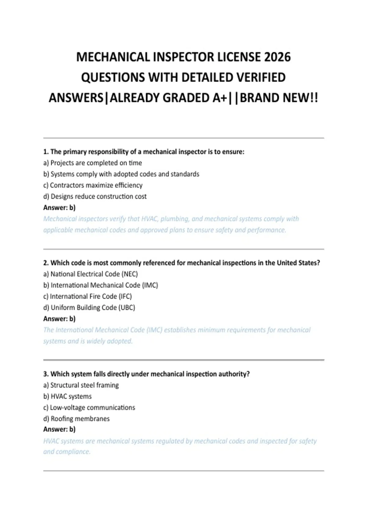 1. The primary responsibility of a mechanical inspector is to ensure: