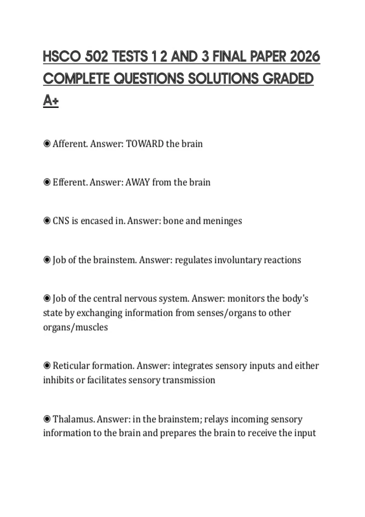◉ Afferent. Answer: TOWARD the brain
