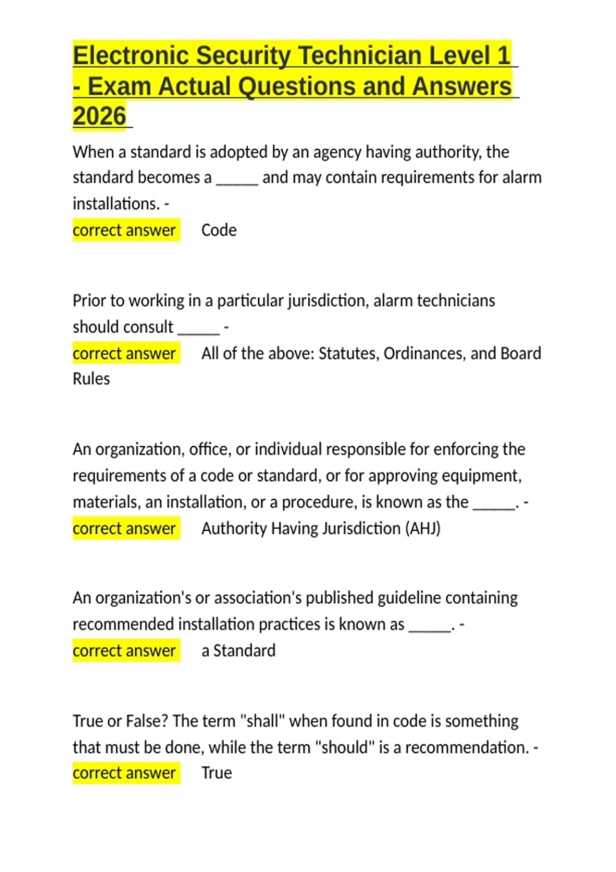 ,Electronic Security Technician Level 1