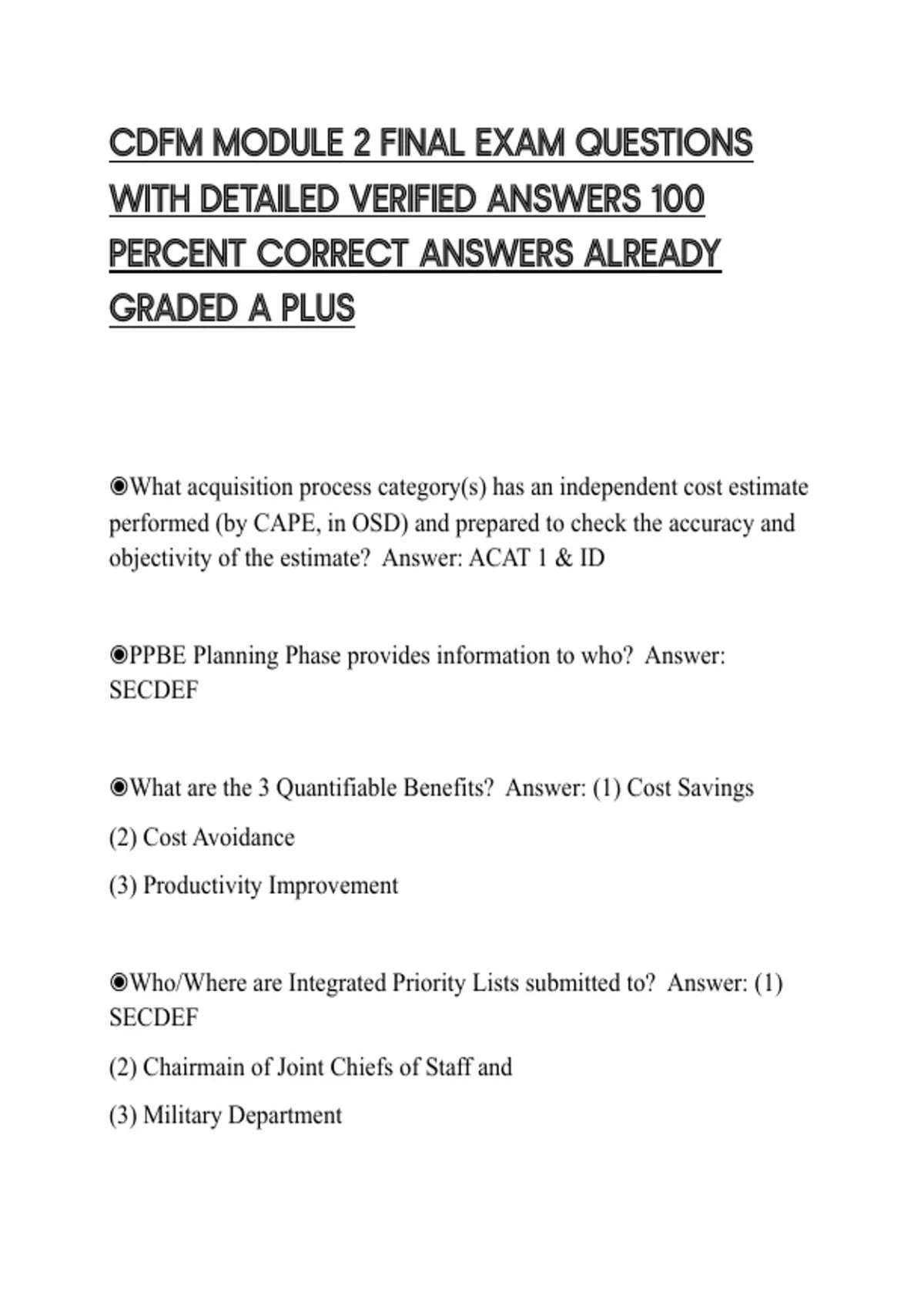 CDFM MODULE 2 FINAL EXAM QUESTIONS