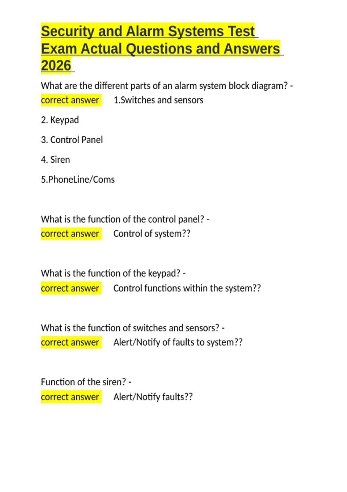 Security and Alarm Systems Test Exam Actual Questions and Answers 2026.docx