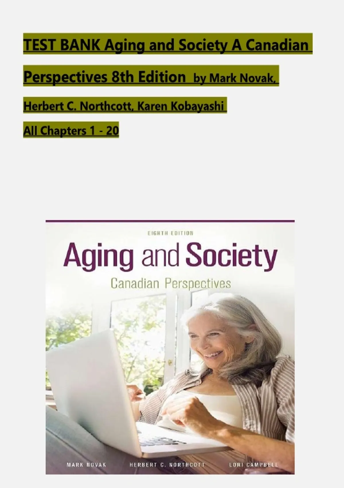 Aging and Society: Canadian Perspectives 8th Edition by Mark Novak, Herbert C. Northcott, TEST BANK, Verified Chapters 1 - 20, Complete Newest Version