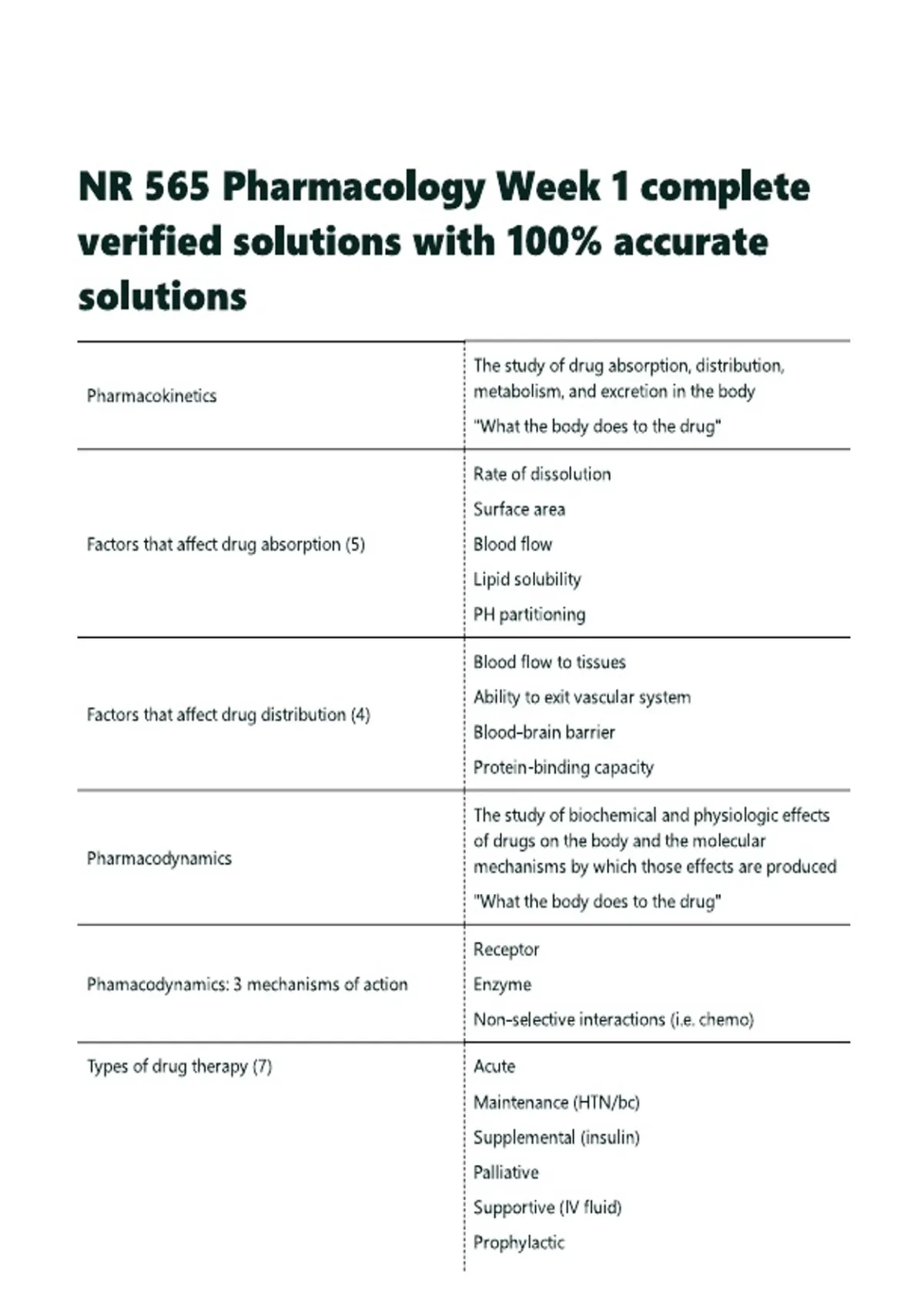 NR 565 Pharmacology Week 1 complete verified solutions with 100- accurate solutions