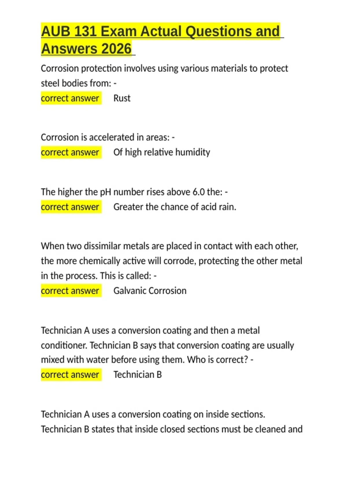 AUB 131 Exam Actual Questions and