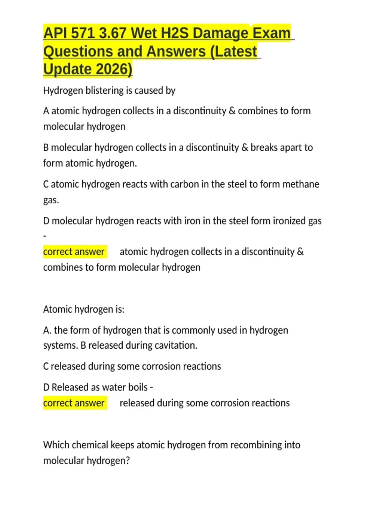 API 571 3.67 Wet H2S Damage Exam Questions and Answers (Latest Update 2026).docx