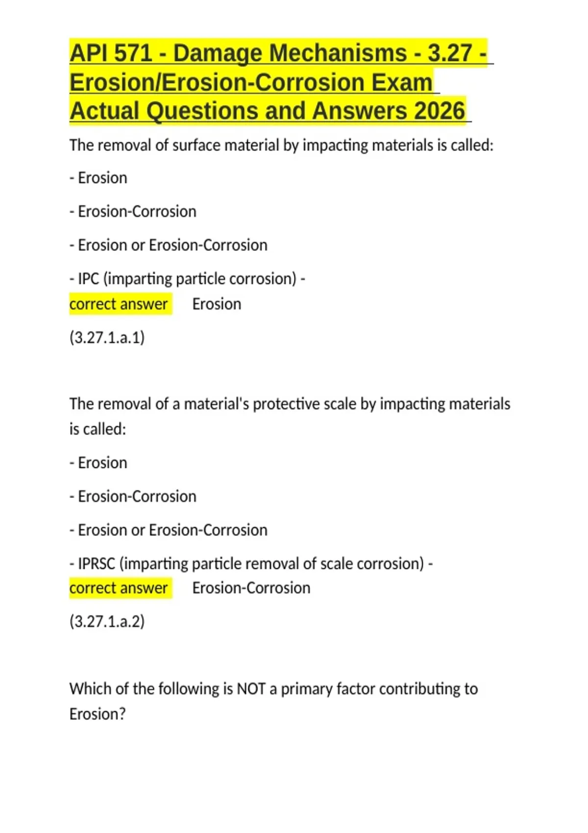 API 571 - Damage Mechanisms - 3.27 - Erosion Erosion-Corrosion Exam Actual Questions and Answers 2026.docx